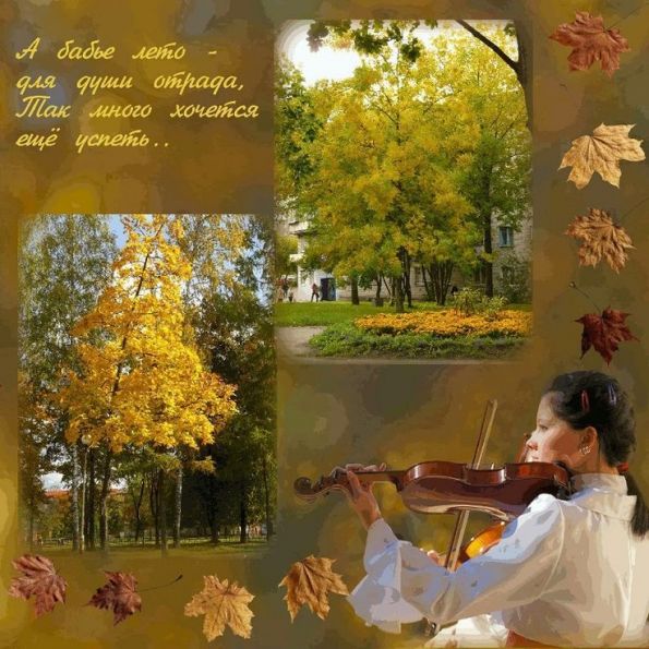 ...ПОСТЕПЕННО КАК-ТО ПОДКРАДЫВАЕТСЯ ОСЕНЬ! МНЕ ВОТ В ОДЕССУ ВО ВТОРОЙ ПОЛОВИНЕ СЕНТЯБРЯ ЕХАТЬ, А Я НЕ ЗНАЮ ЧТО НА СЕБЯ ОДЕТЬ!..В ПЛАВКАХ ПОЕДИШЬ, ВРОДЕ ЛЮДИ НЕ ПОЙМУТ , У ВИСКА ПАЛЬЦЕМ ПОКРУТЯТ...ШУБУ НАПЯЛИШЬ,ШАРАХАТЬСЯ НАЧНУТ, ПЕРЕШЕПТЫВАТЬСЯ, ЧТО МОЛ МУЖИК С ДИКСОНА ВОЗВРАЩАЕТСЯ!..ТАК ЧТО БАБЬЕ ЛЕТО - ПРОКАЗНИЦА В НЕКОТОРОМ РОДЕ И ПИСАТЬ О НЁМ ХОЧЕТЬСЯ НЕОБЫКНОВЕННОЕ! Но, слава Всевышнему, в этом году, Погода на диво , с природой в ладу! И дождь не идёт, да ветра не шалят, Клин птиц, к удивлению, на юг не летят! Уверен , еще весь спектакль впереди! На стульчик присядь, за окно погляди! Пропустишь и больше не сможешь понять, Что в золоте осень, нельзя устоять!