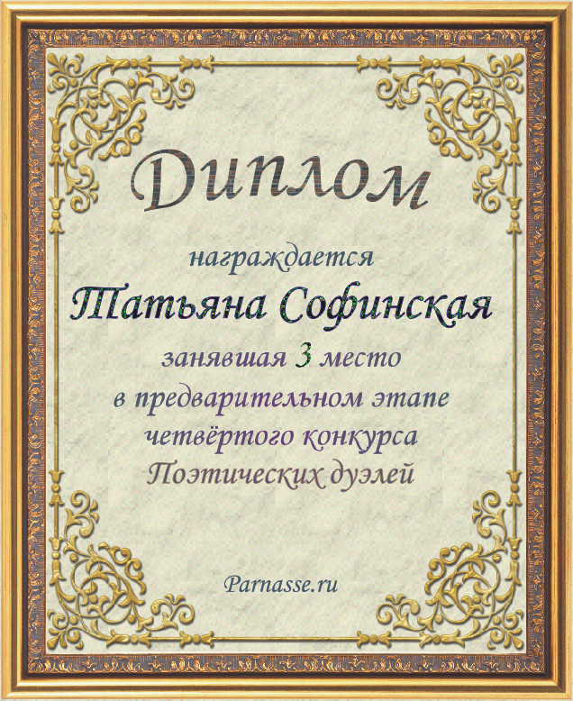 Диплом за третье место в предварительном этапе четвёртого конкурса поэтических дуэлей
