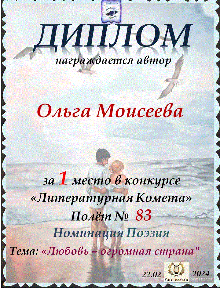 Поздравляю с занятым 1 местом в конкурсе "ЛитКомета - Полёт № 83" - Номинация Поэзия!