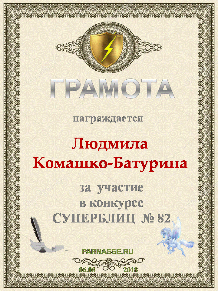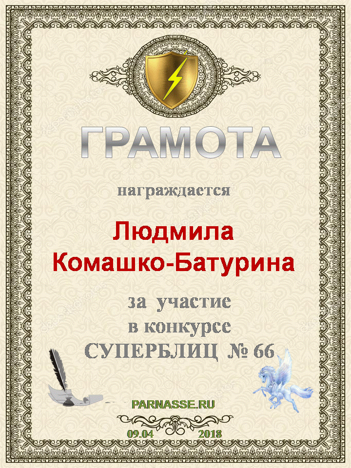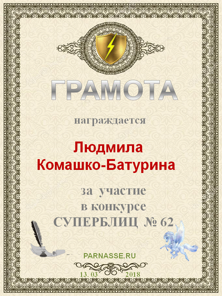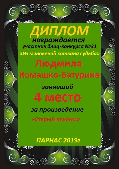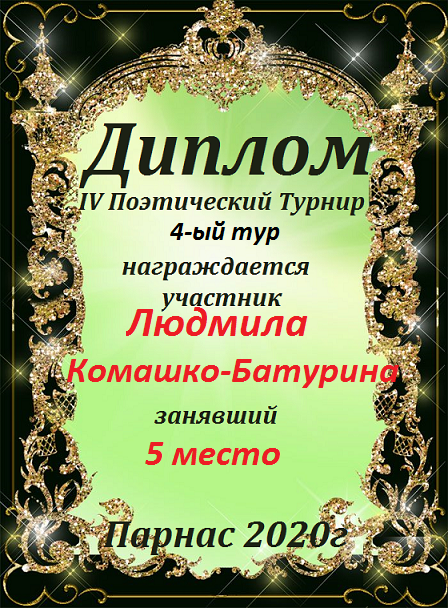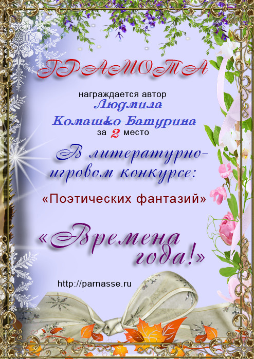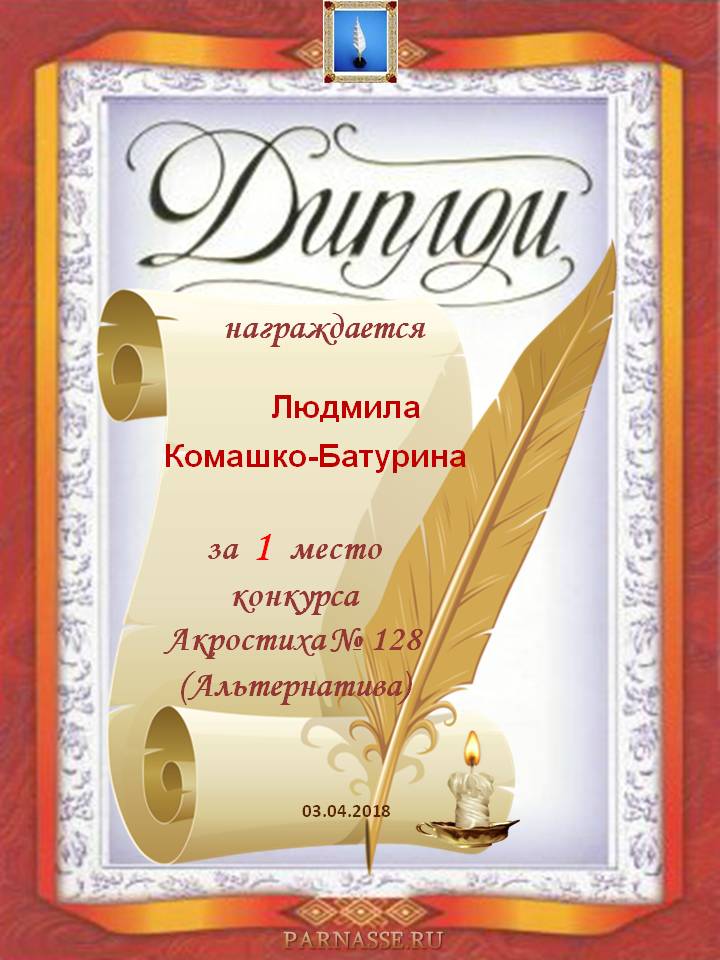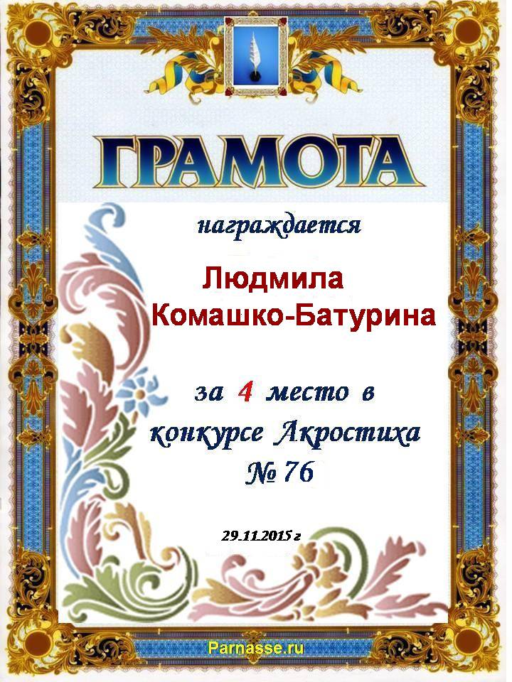 Грамота за 4 место в 118 конкурсе АКРОСТИХА (Альтернатива)! ПОЗДРАВЛЯЮ!
