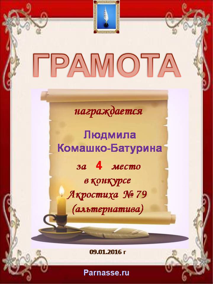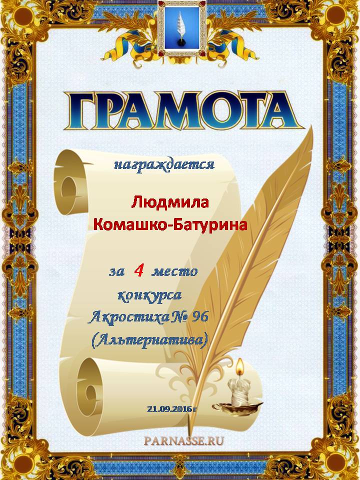Грамота за 4 место в 96 конкурсе АКРОСТИХА (Альтернатива)! ПОЗДРАВЛЯЮ!