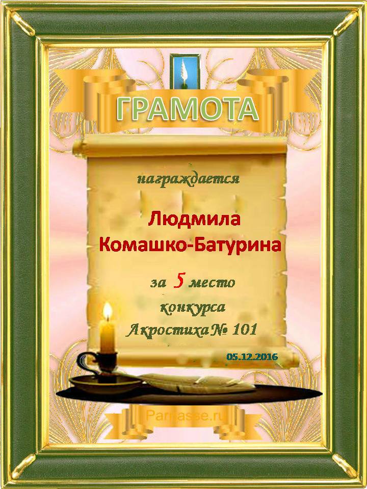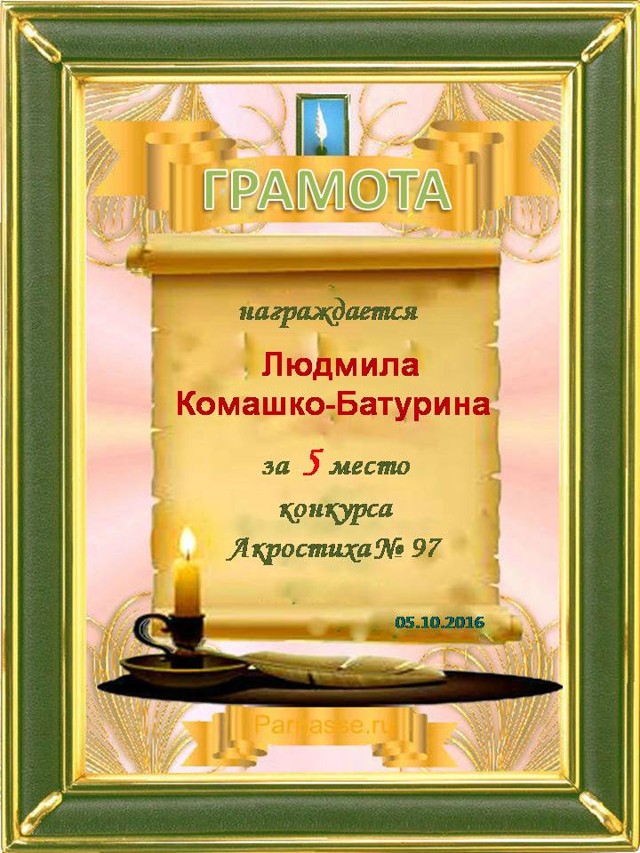 Грамота за 5 место в 116 конкурсе АКРОСТИХА (Альтернатива)! ПОЗДРАВЛЯЮ!