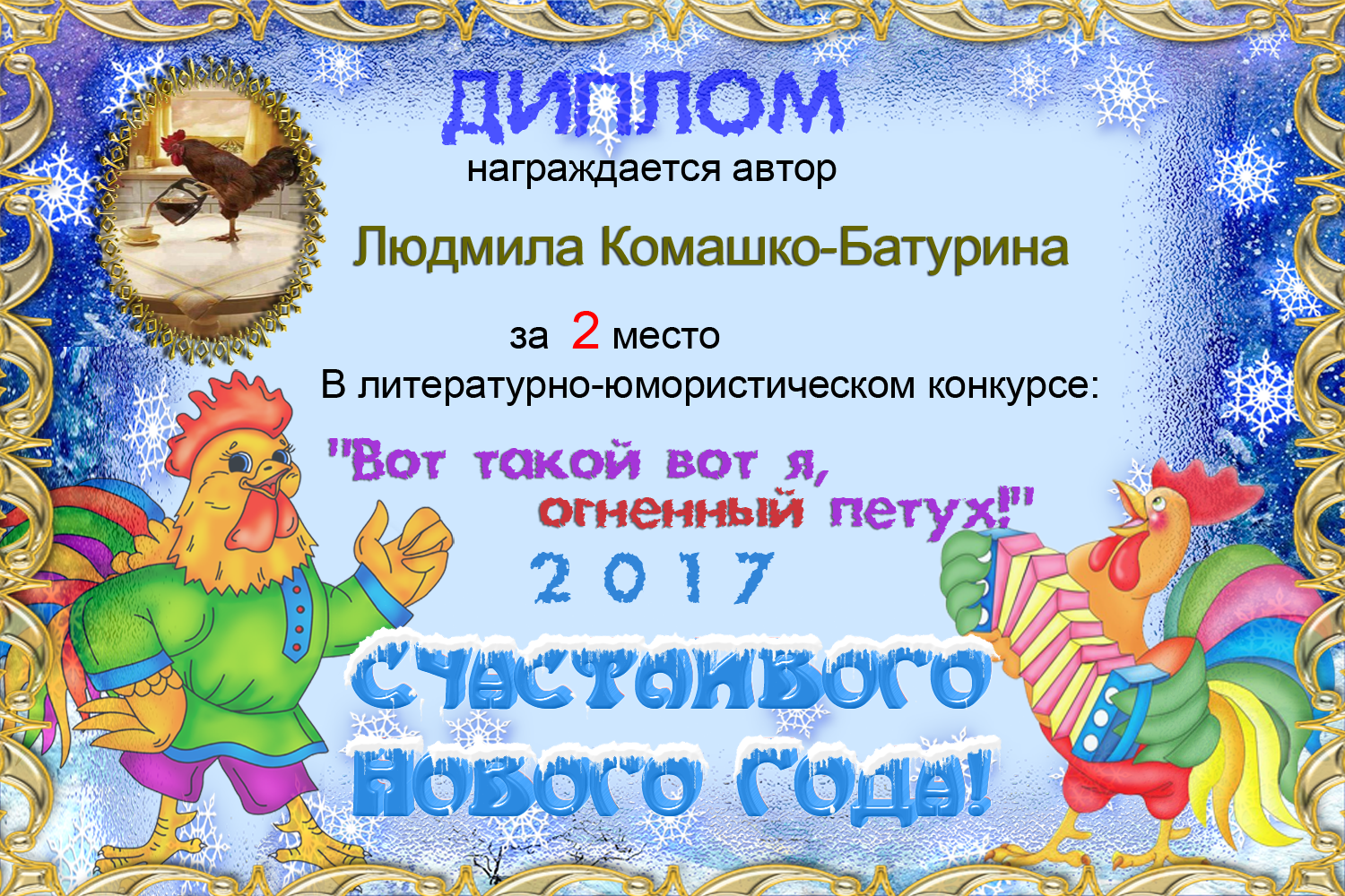 За победу в конкурсе на тему:"Вот такой вот я, огненный петух!"