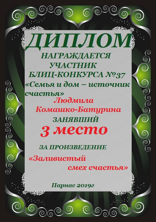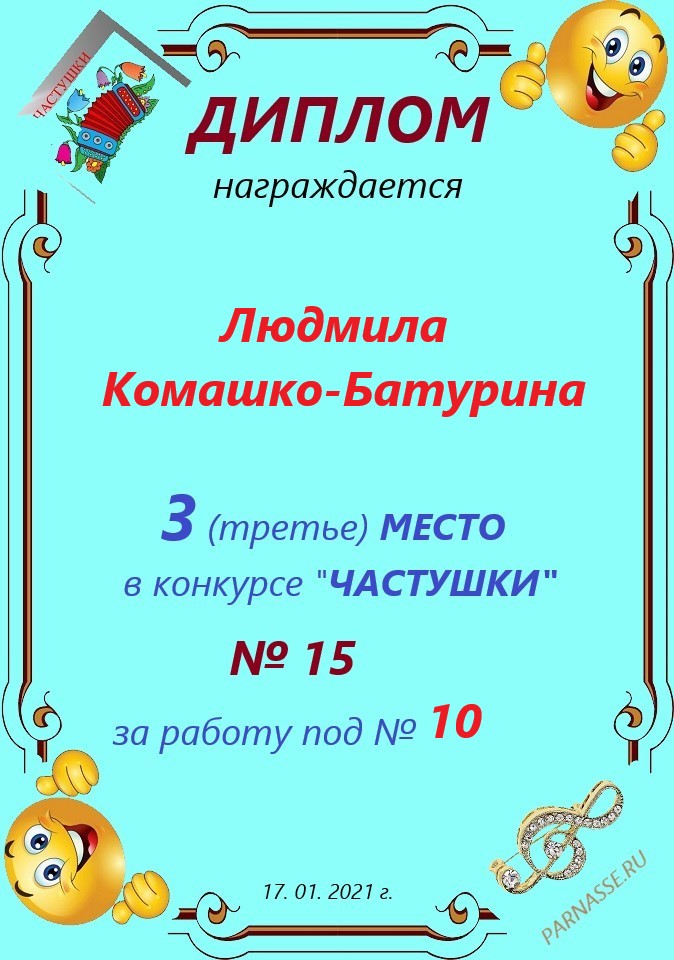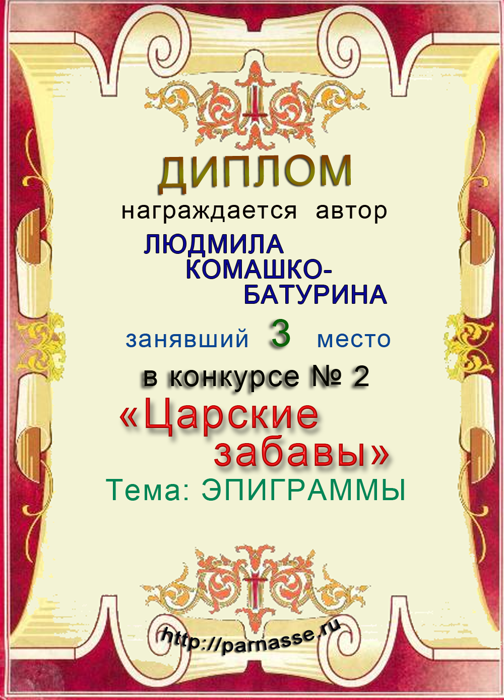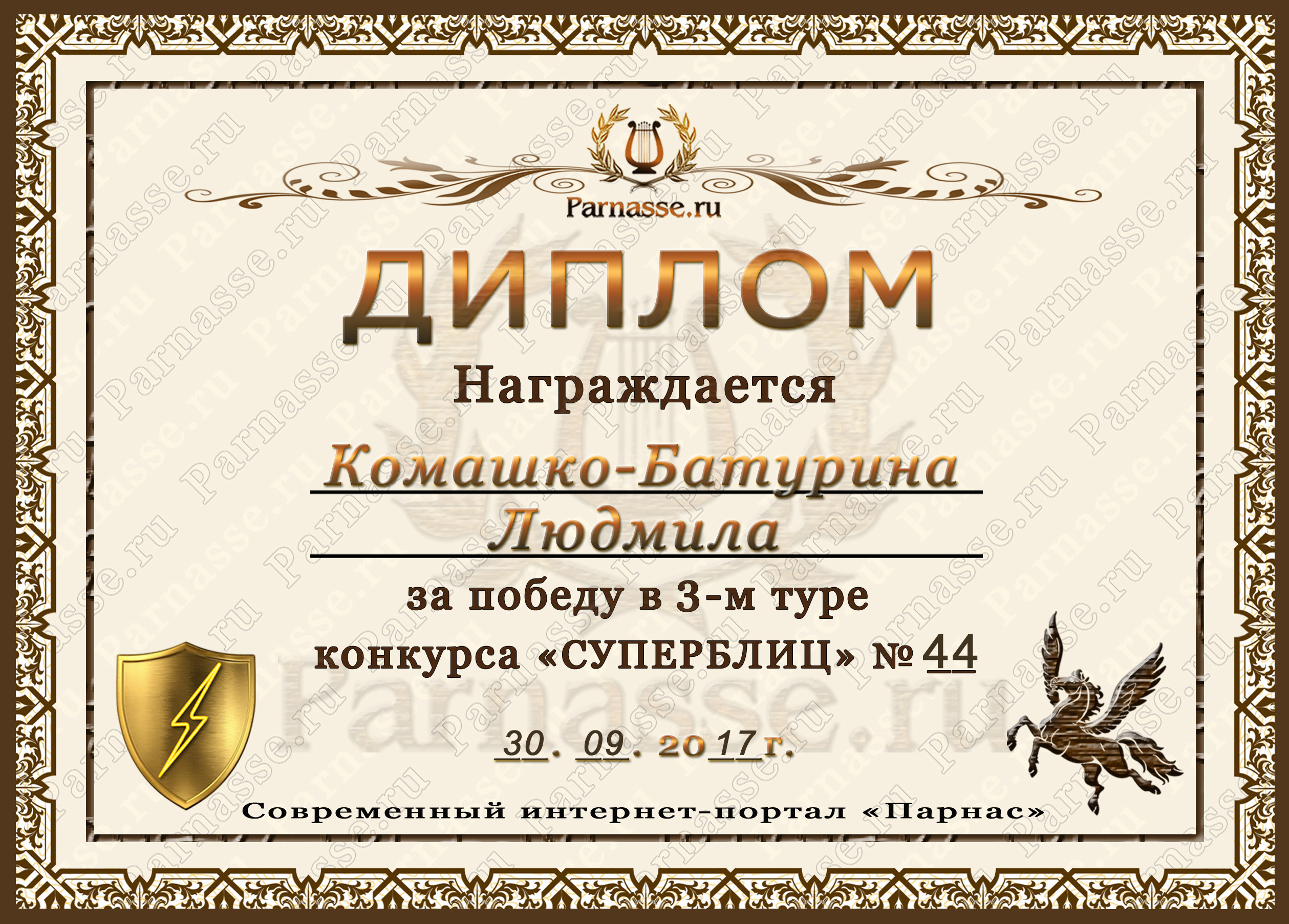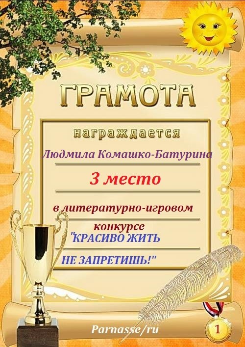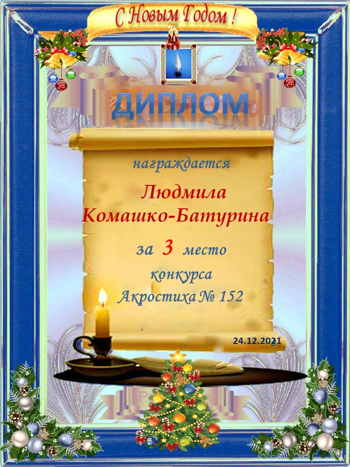 Диплом за 3 место в 117 конкурсе АКРОСТИХА (Альтернатива)! ПОЗДРАВЛЯЮ!