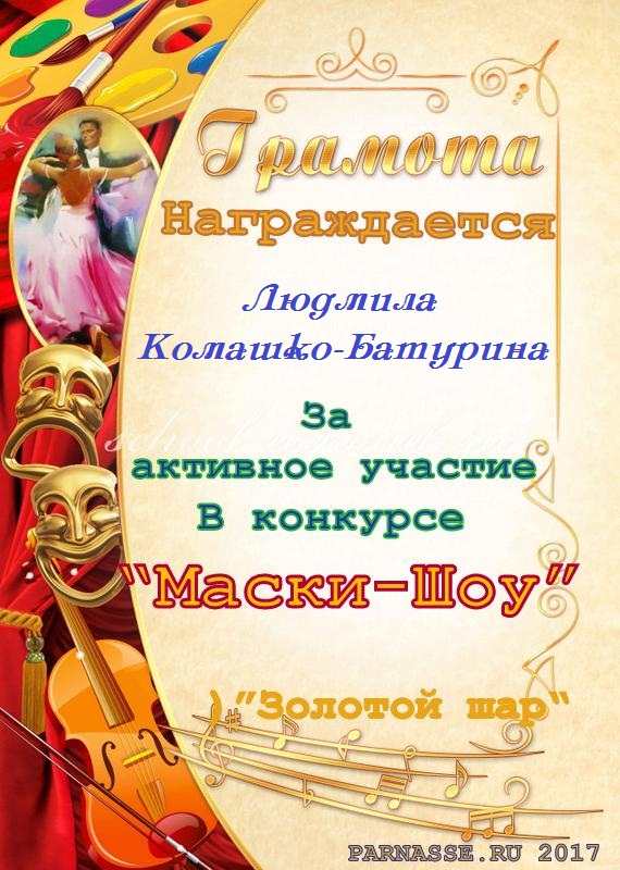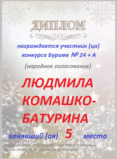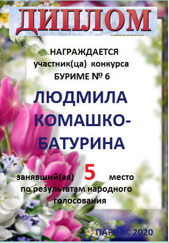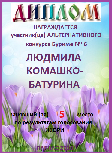 Грамота за 5 место в 106 конкурсе АКРОСТИХА (Альтернатива)! ПОЗДРАВЛЯЮ!
