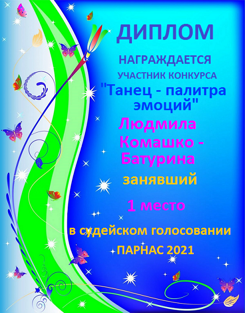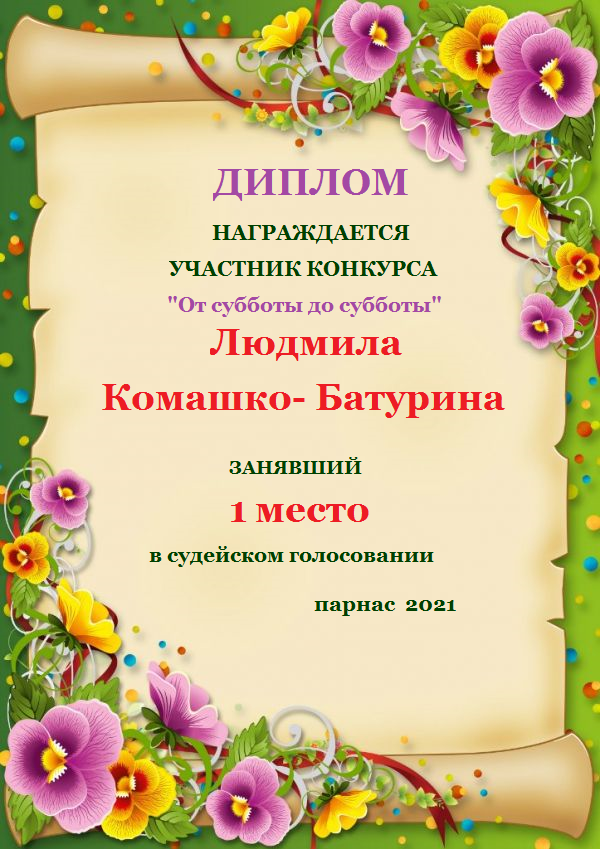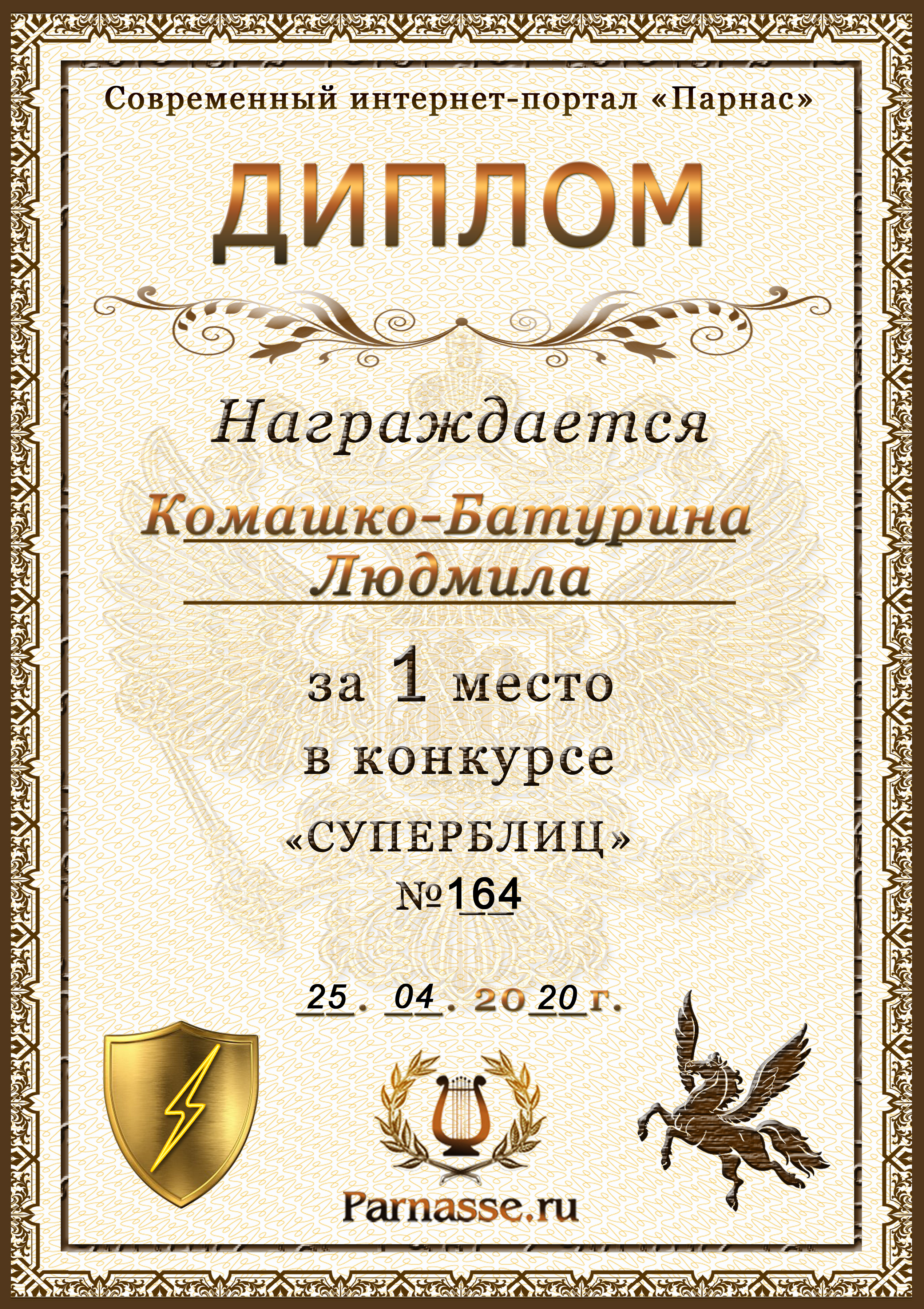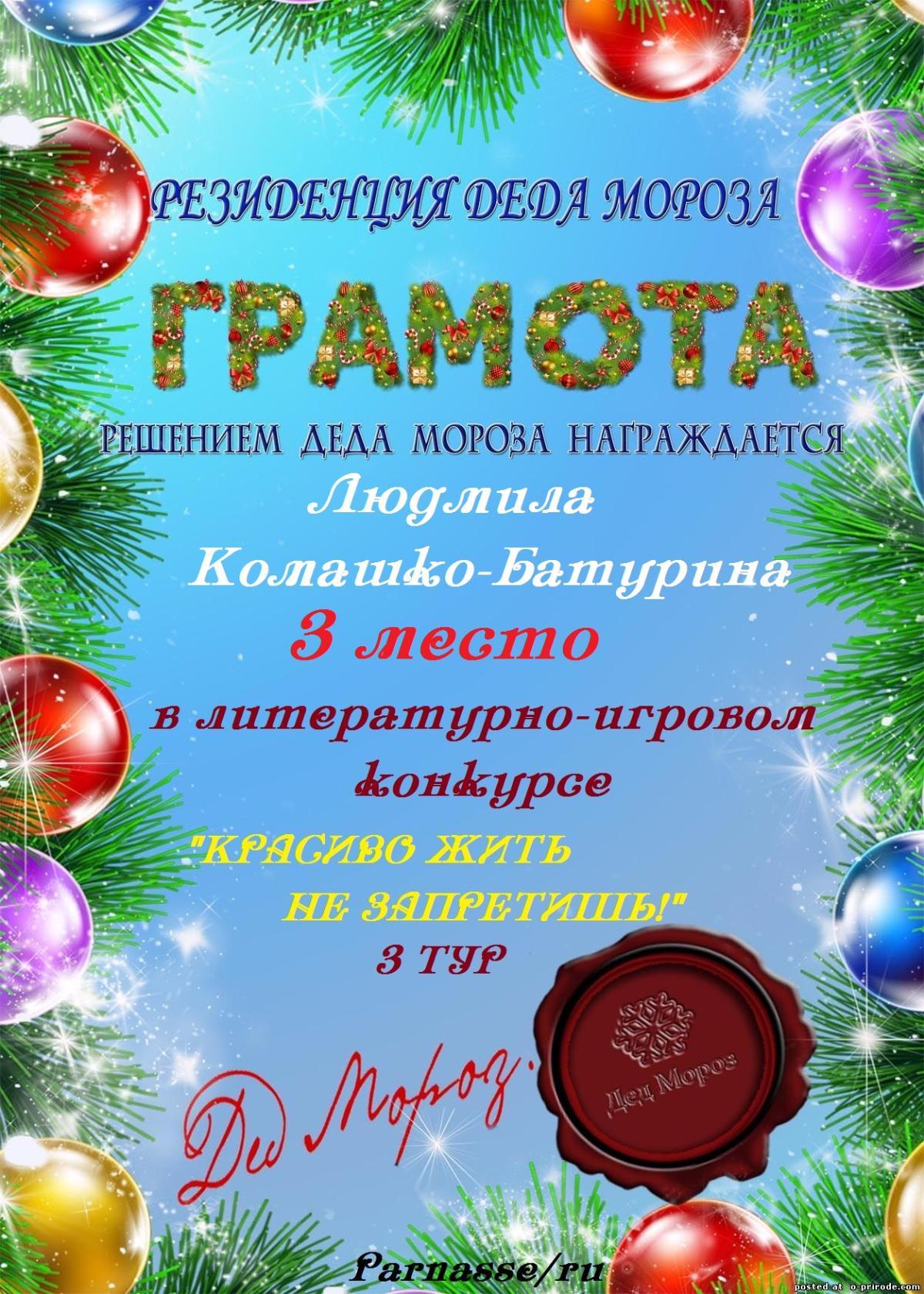 Диплом Победителя за 1 место в праздничном конкурсе "Поздравим Парнас с трёхлетием вместе!"