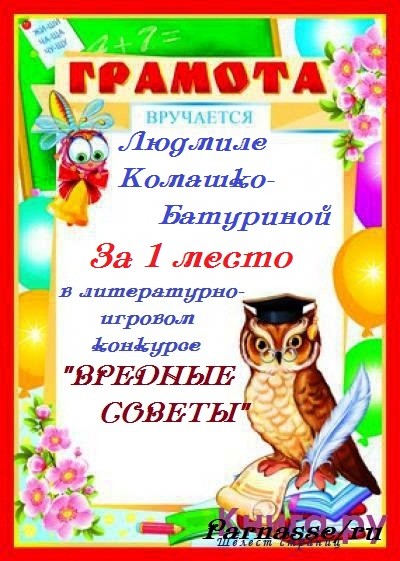 Диплом за 2 место в конкурсе " С юмором. о наболевшем"