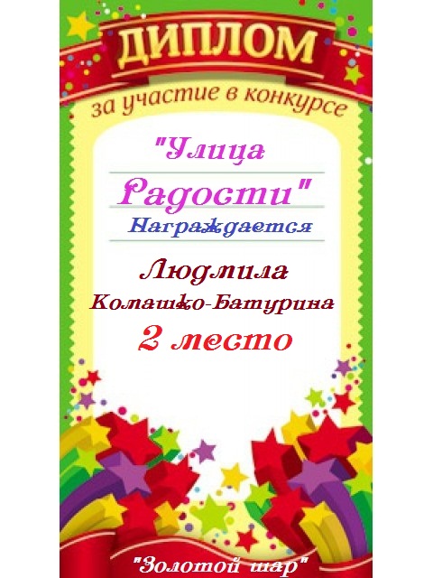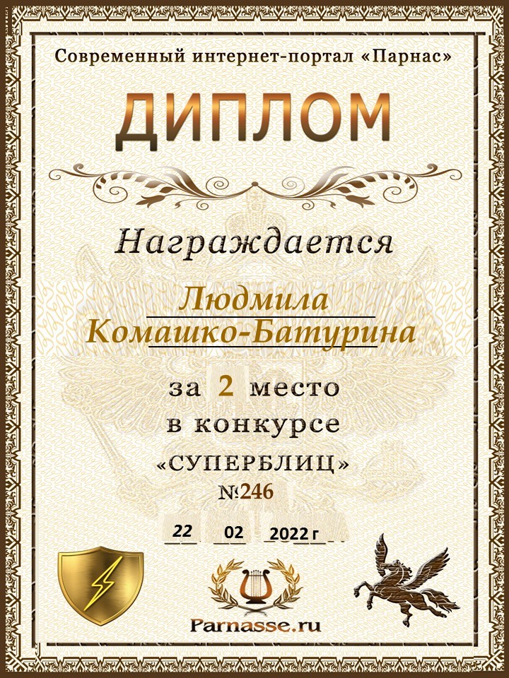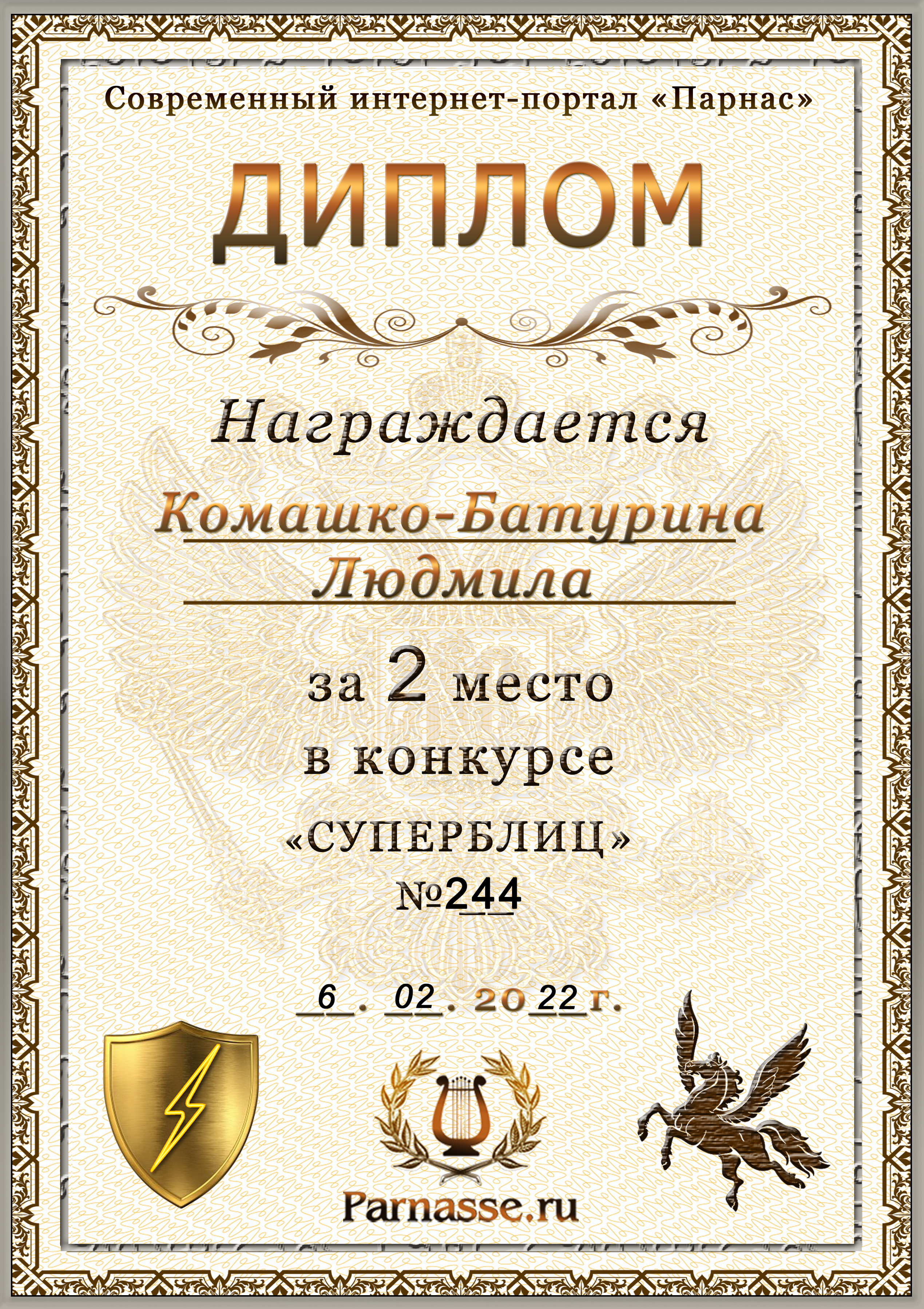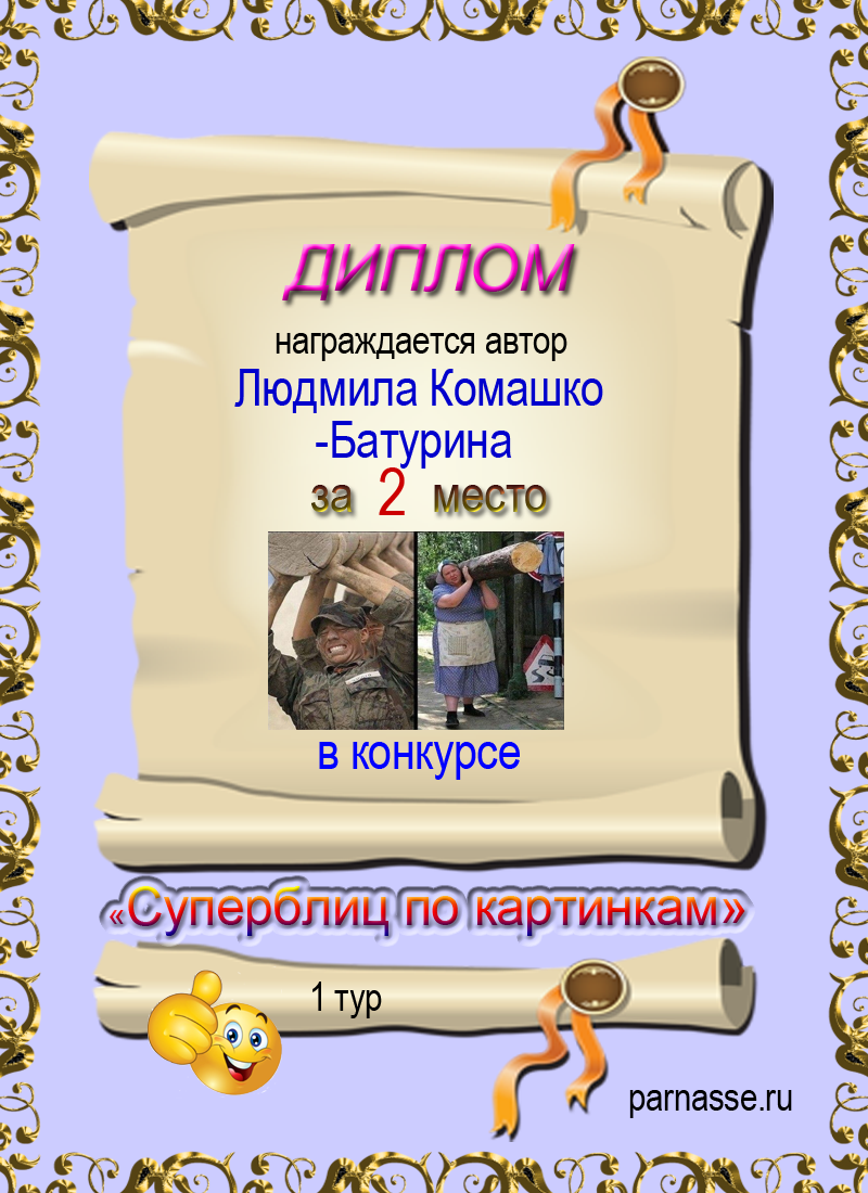 Диплом за 2 место во 2 туре в конкурсе СУПЕРБЛИЦА № 27!ПОЗДРАВЛЯЮ!