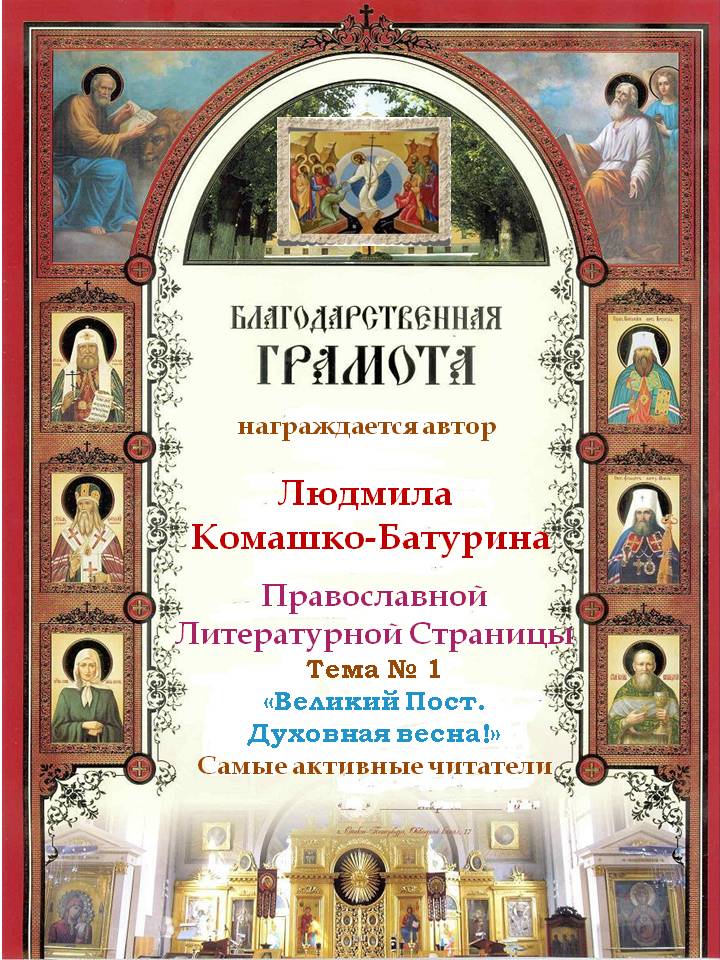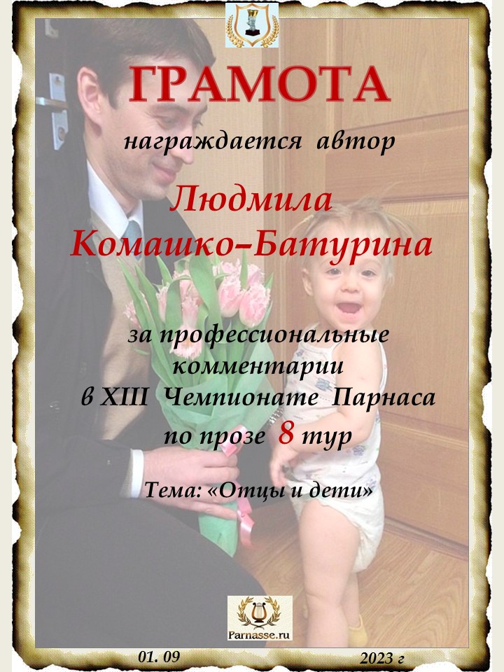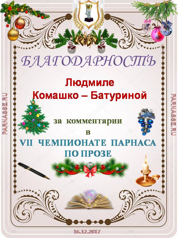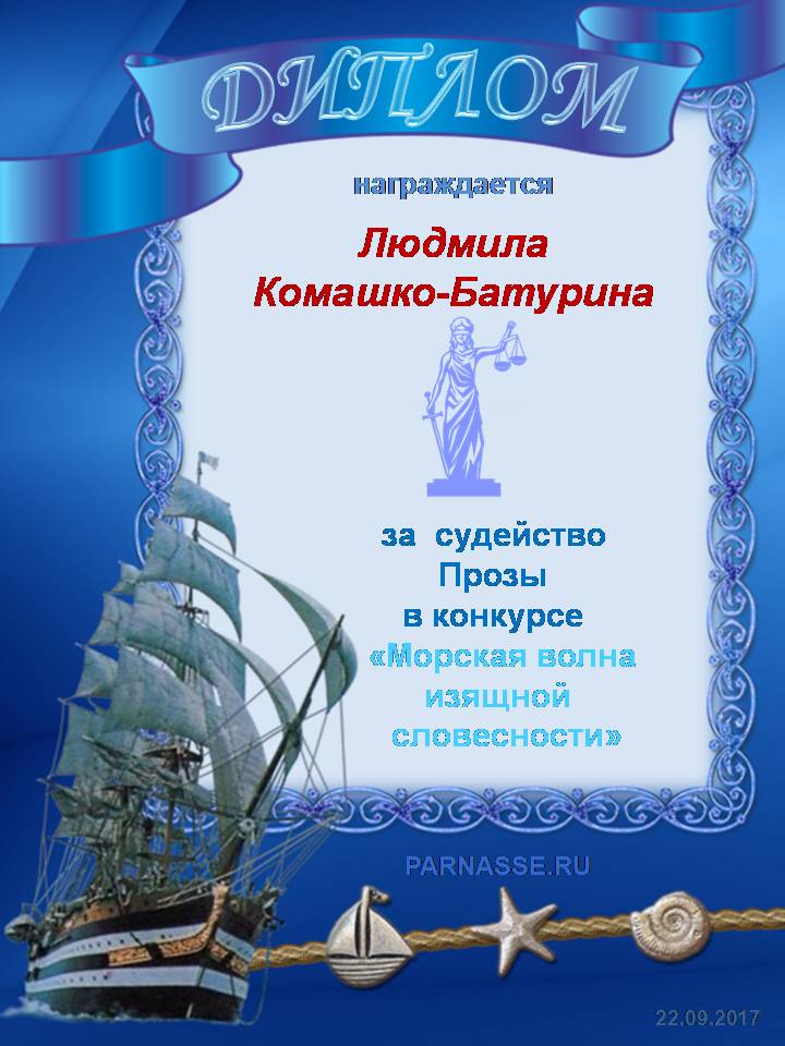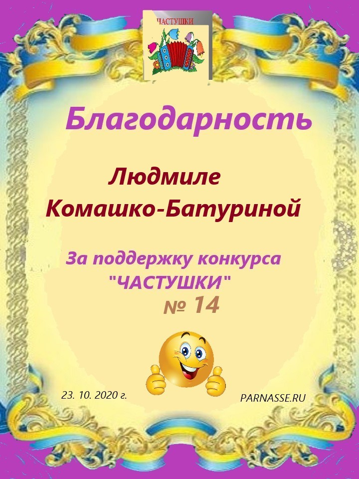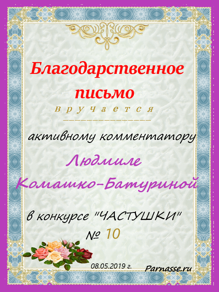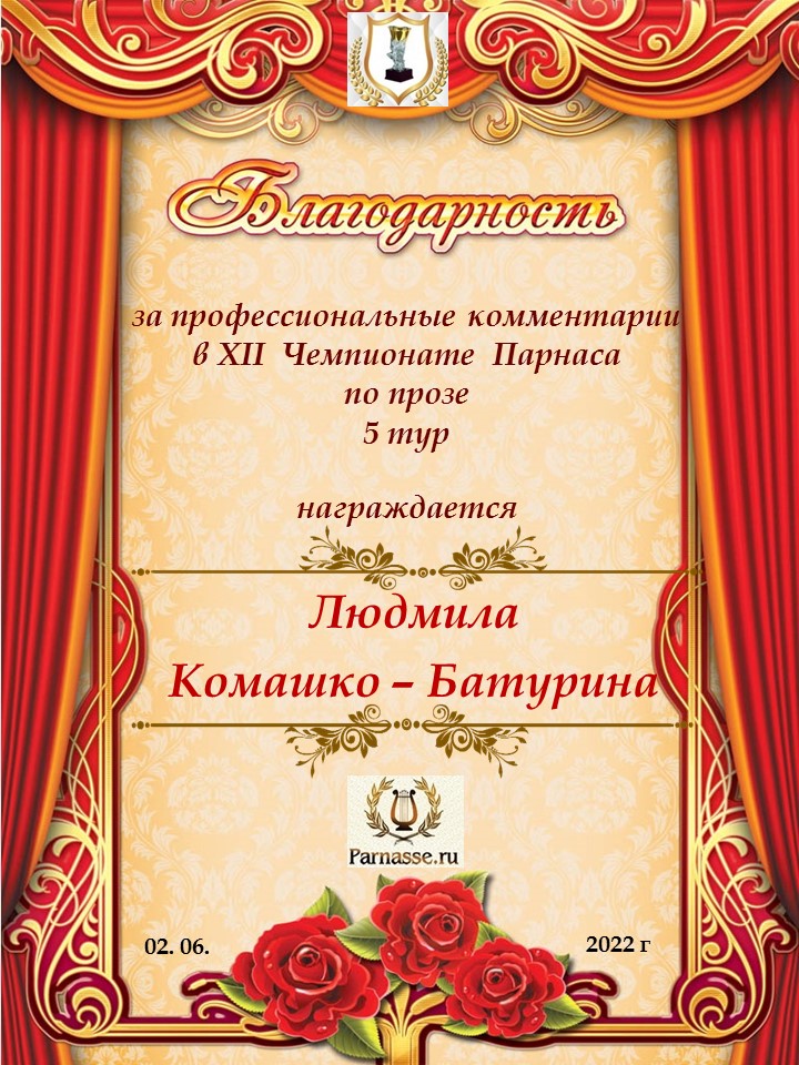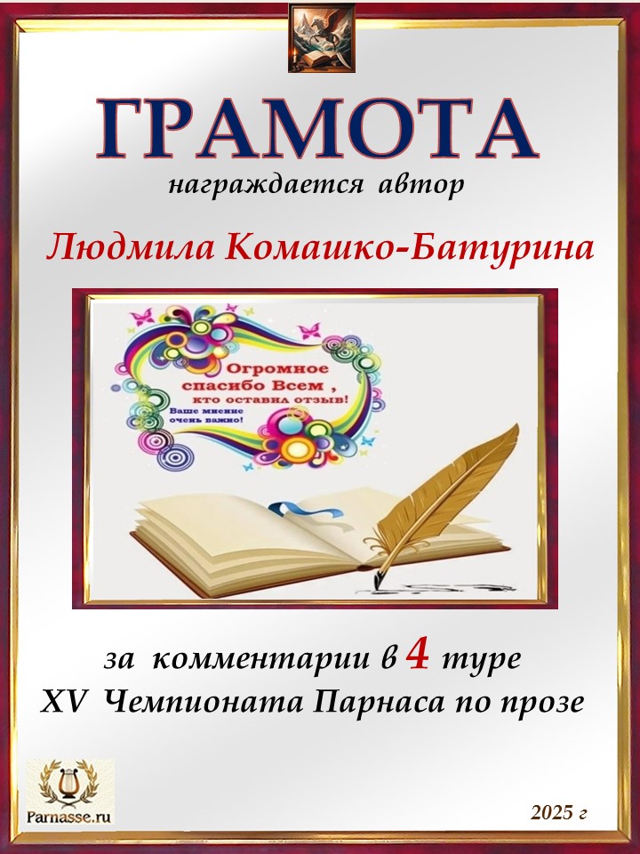 Людмила, примите благодарность за объективное судейство в конкурсе - номинация Проза!
