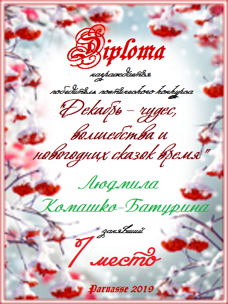 Первое место по решению Администрации и Главного судьи «Декабрь - время чудес, волшебства и новогодних сказок»