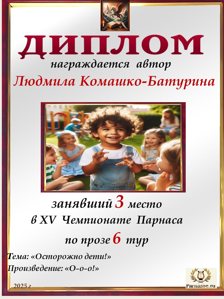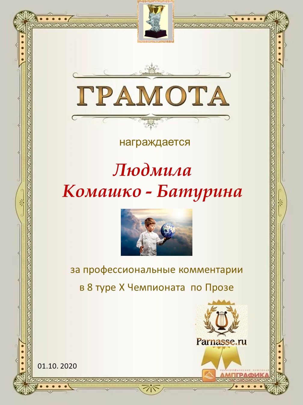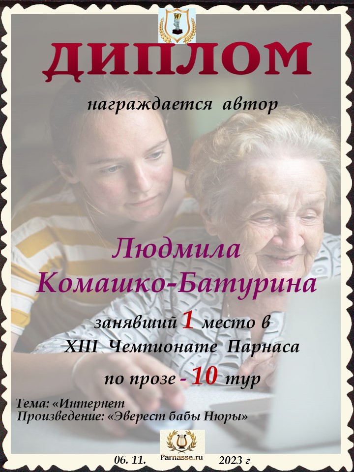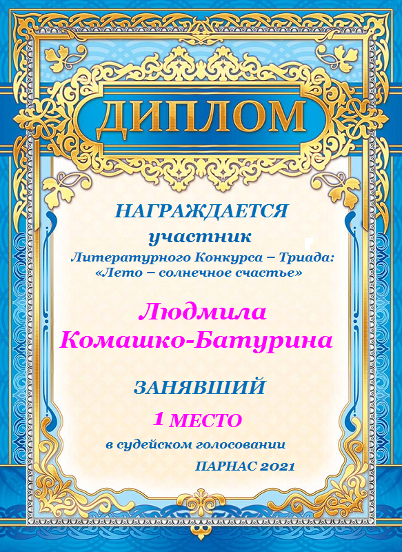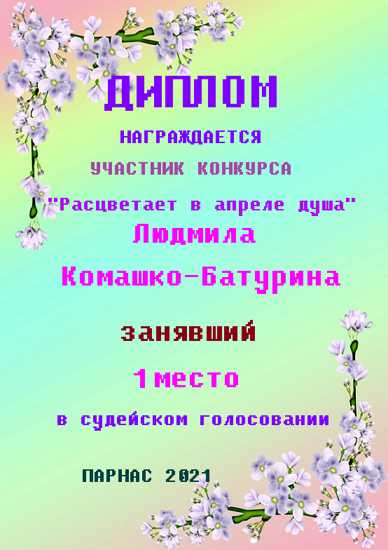 Поздравляю с 1 местом в конкурсе "Литературная Комета - Полёт № 24" номинация Проза! Спасибо за творчество!