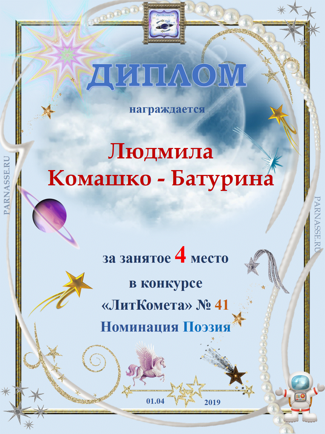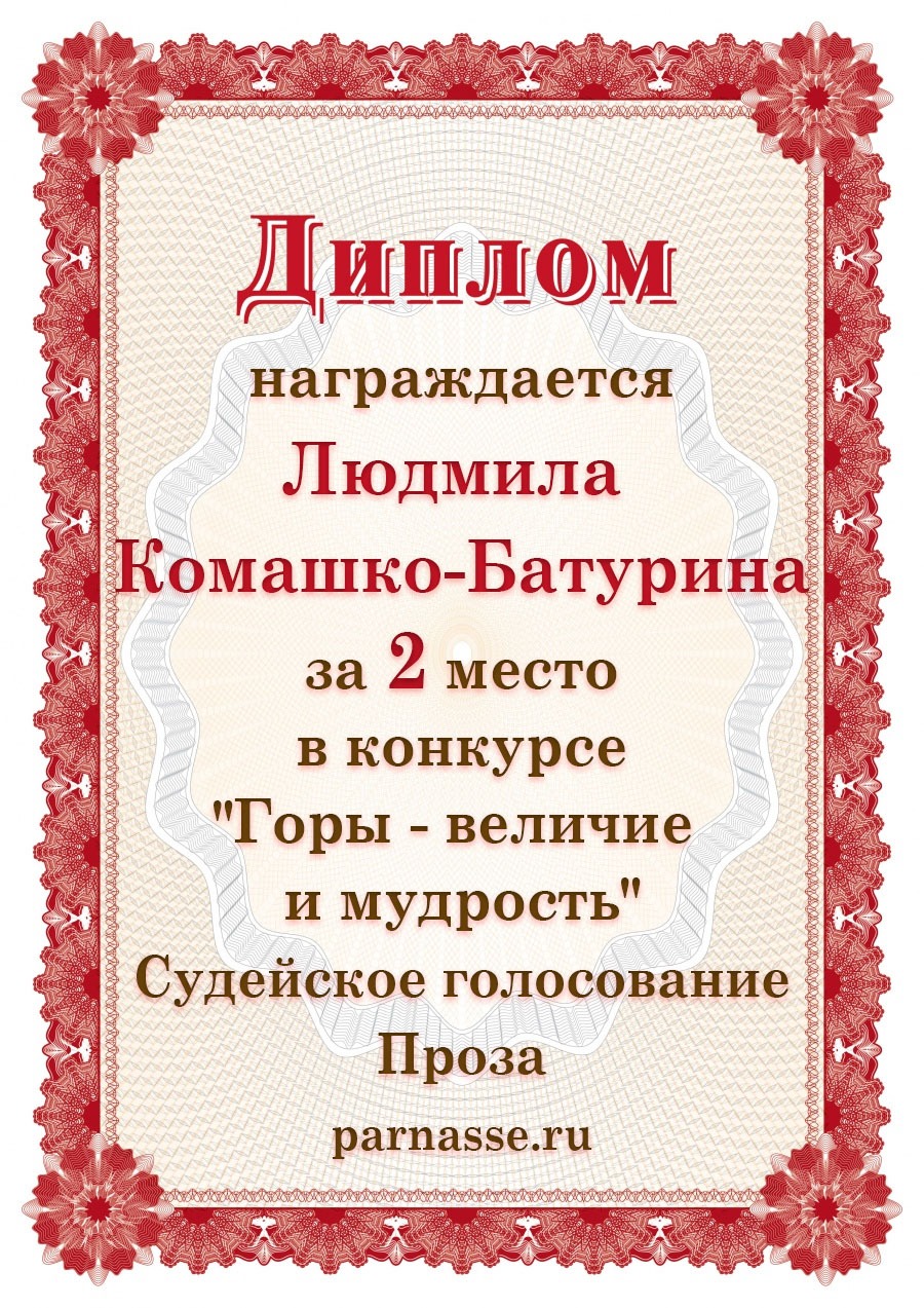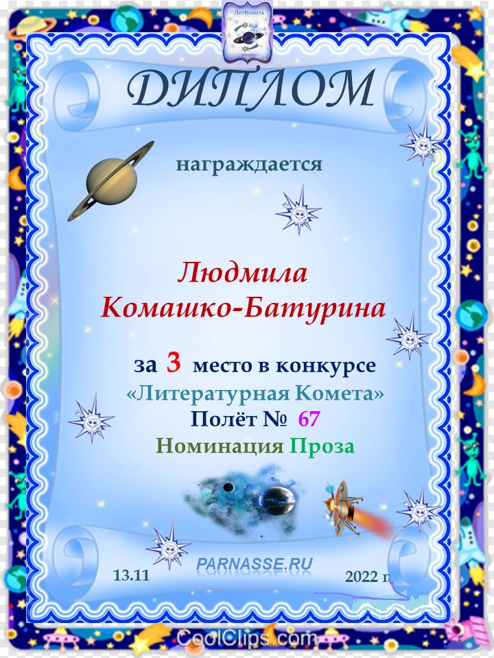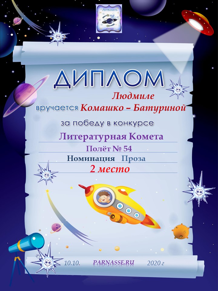 Диплом за 2 место в конкурсе "ЛитКомета"- Полёт № 13 - проза