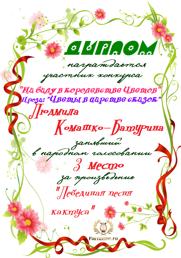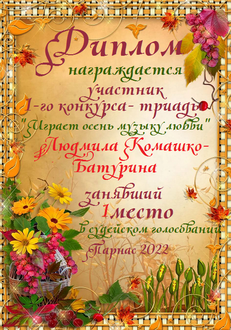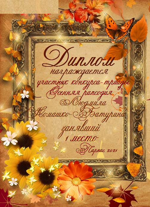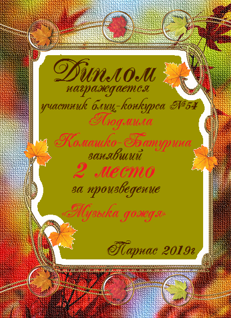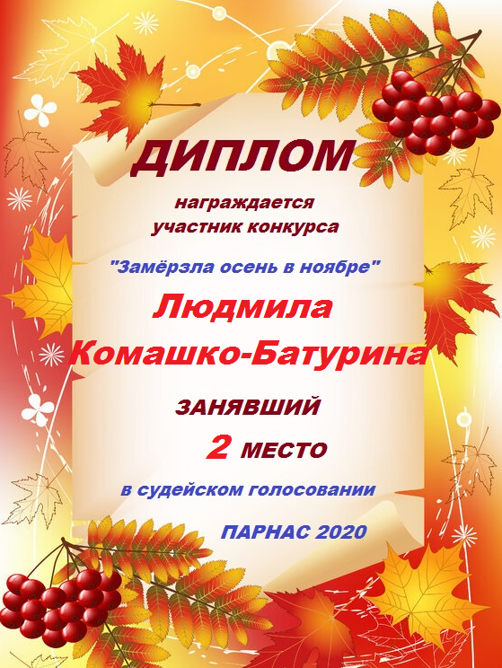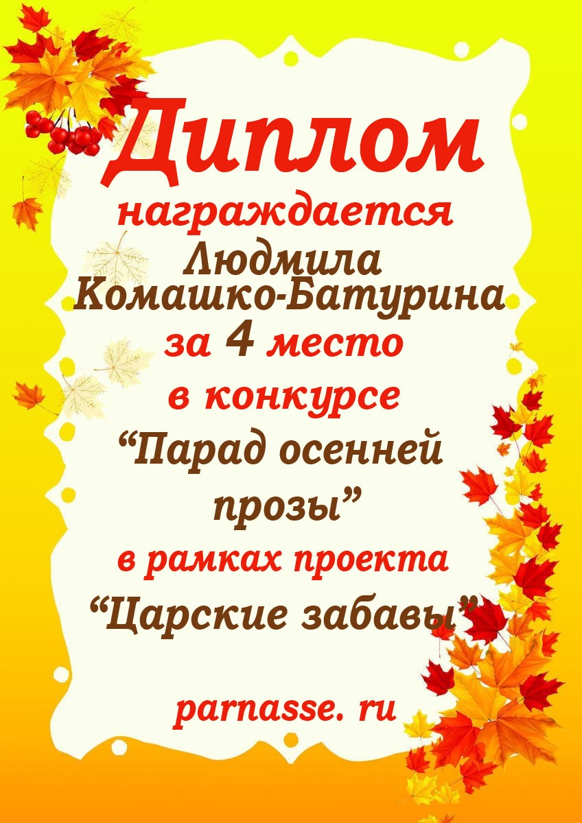 Поздравляем со 2 местом в конкурсе "Литературный букет осеннего очарования" - номинация Проза, судейское голосование!