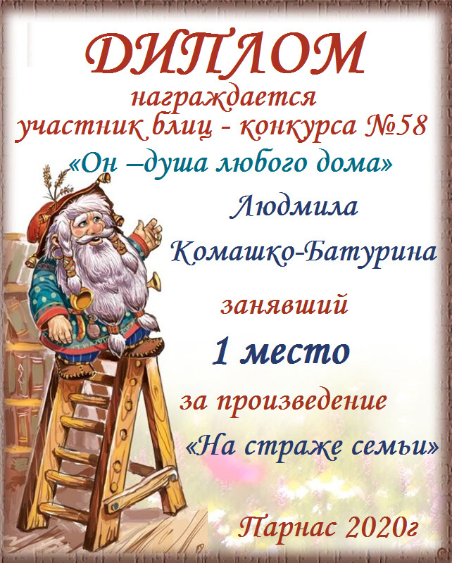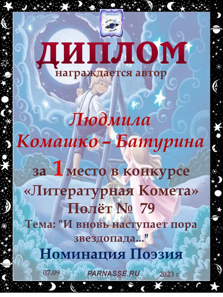 Диплом за 1 место в конкурсе "ЛитКомета"- Полёт № 9 - проза