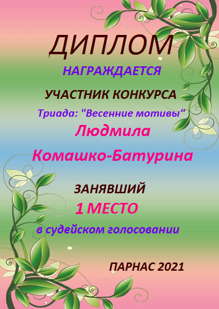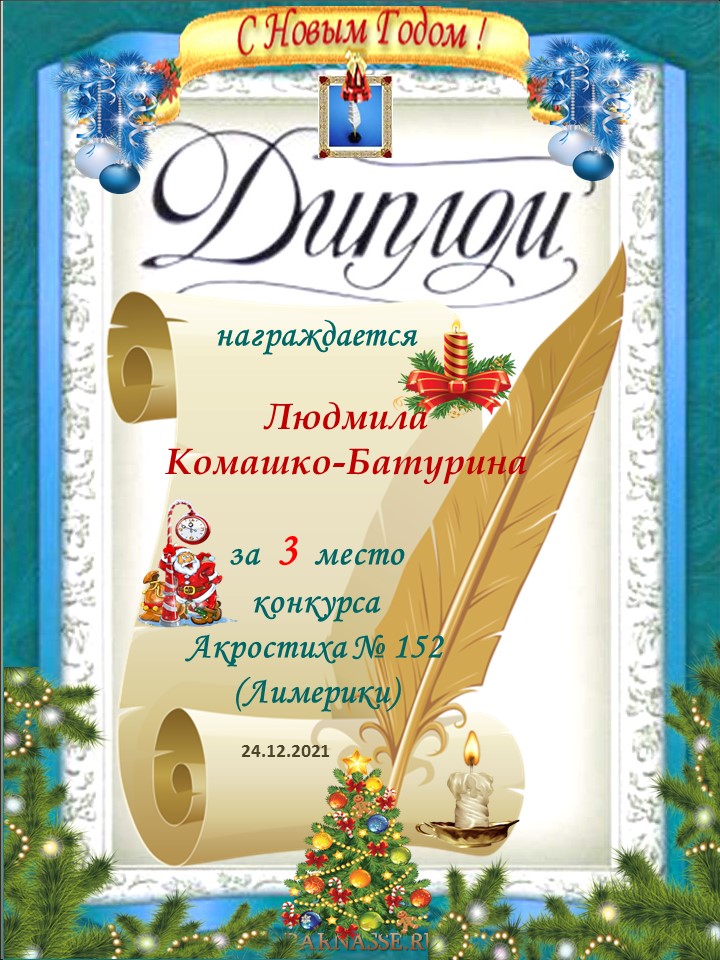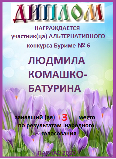 Диплом за 3 место в 114 конкурсе АКРОСТИХА (Альтернатива)! ПОЗДРАВЛЯЮ!