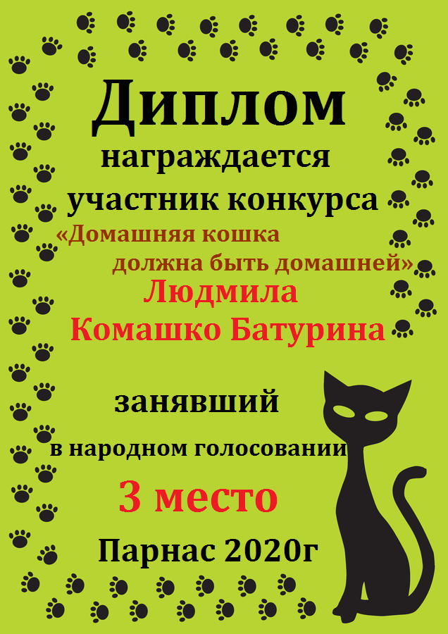 Первое место по итогам конкурса "Мой нежный и ласковый друг"