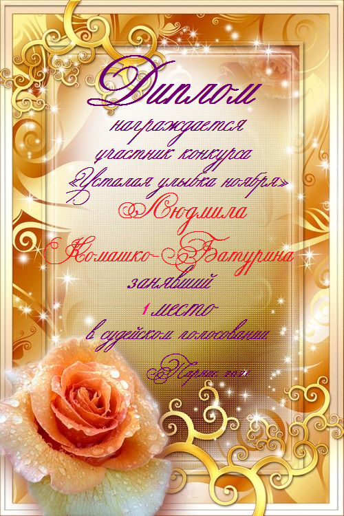 Диплом за 3 место в конкурсе "Дню всех Влюблённых посвящая"