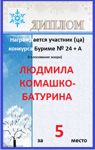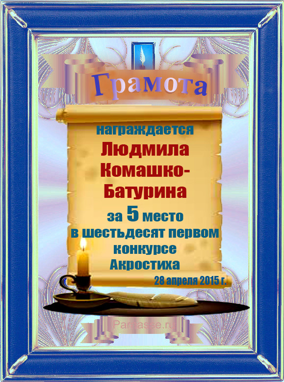 Грамота за 5 место в 123 конкурсе АКРОСТИХА (Альтернатива)! ПОЗДРАВЛЯЮ!
