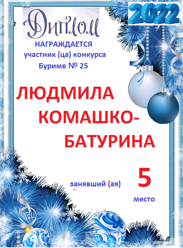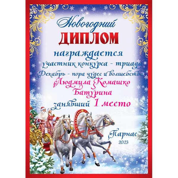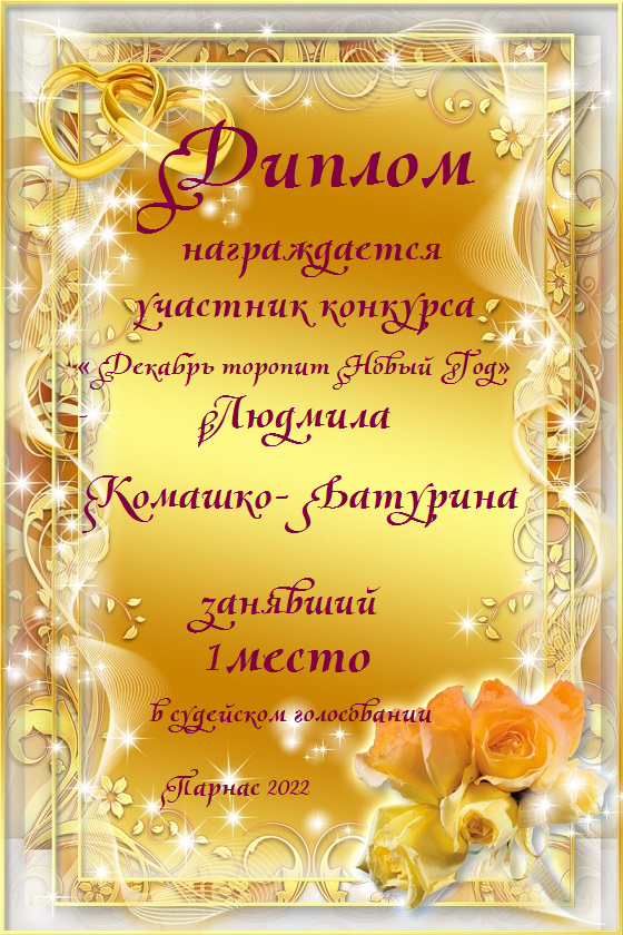 Поздравляю с победой - 2 местом в номинации Проза! Желаю счастья, благополучия и здоровья в наступающем году!