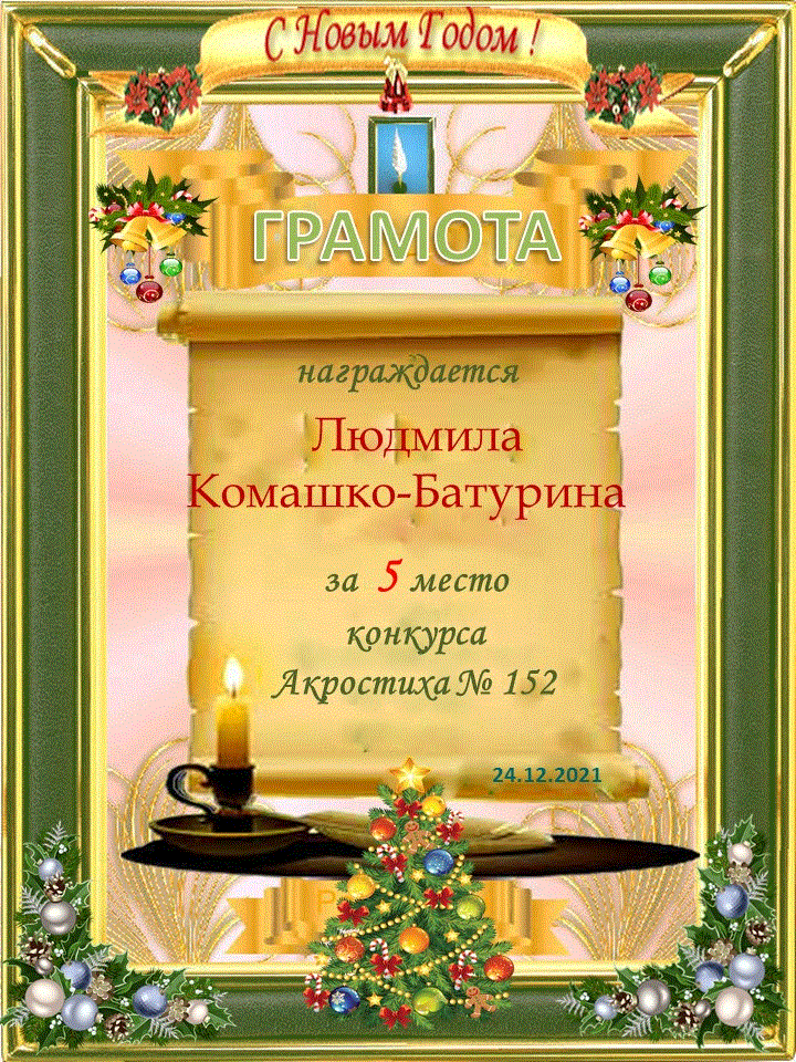 Грамота за 5 место в 104 конкурсе АКРОСТИХА (Альтернатива)! ПОЗДРАВЛЯЮ!