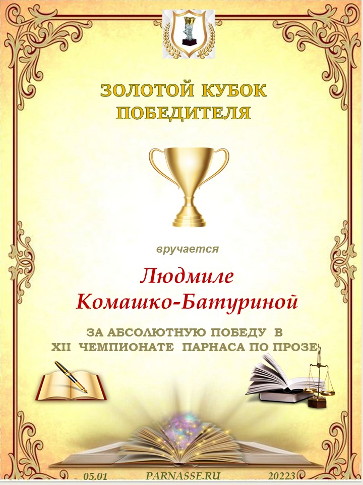 Вручается медаль за 1 место в 6 туре XV Чемпионата Парнаса по прозе
