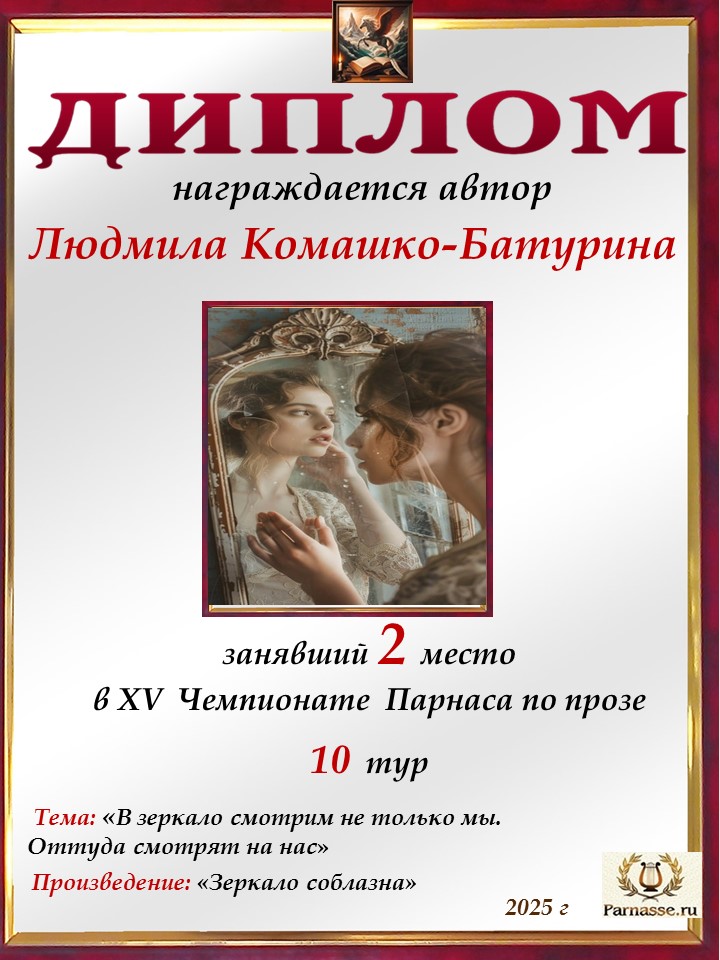 ![]() Медаль за 2 место в 7 туре XV Чемпионата Парнаса по прозе