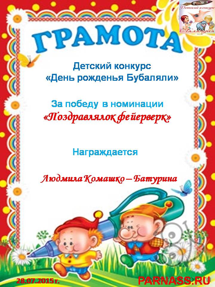 Грамота за творческие успехи в литературно-игровом конкурсе "В гостях у буриме".ПОЗДРАВЛЯЕМ!