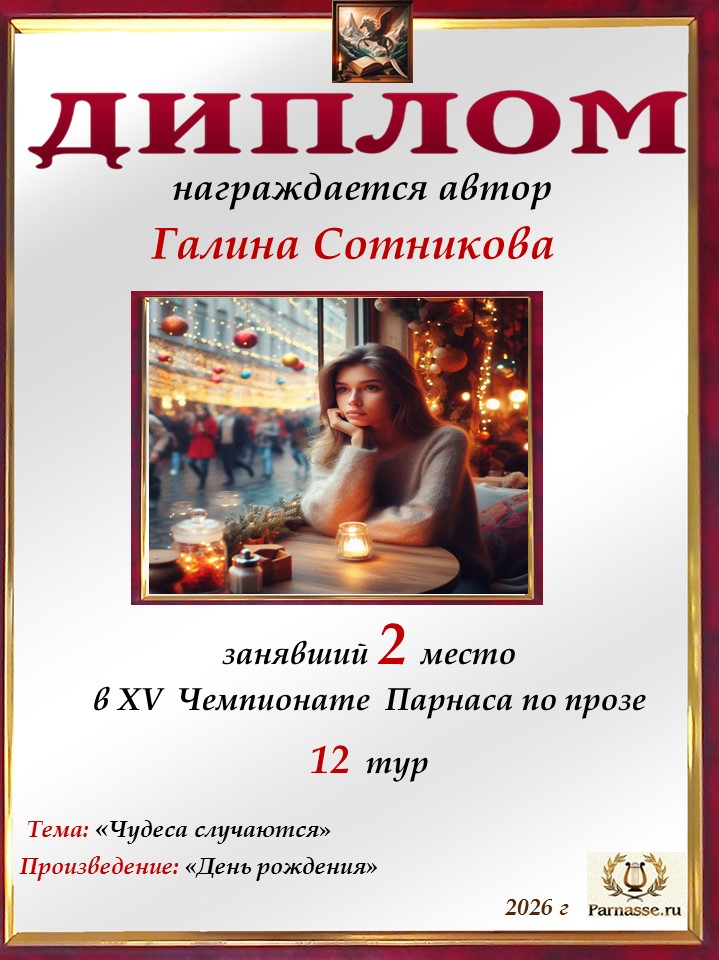 Поздравляю с занятым 2 местом в 12 туре XIII Чемпионата Парнаса по прозе!