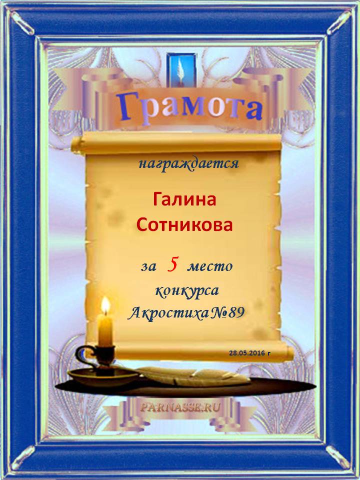 Грамота за 5 место в 136 конкурсе АКРОСТИХА (Альтернатива)! ПОЗДРАВЛЯЮ!