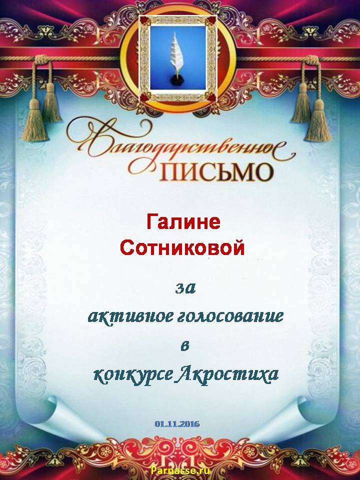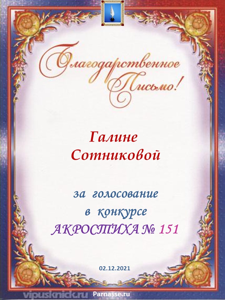 Благодарность за активное голосование в конкурсе Акростиха №151СПАСИБО БОЛЬШОЕ!