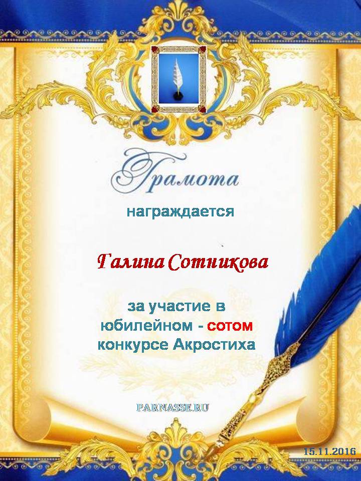 Грамота за 5 место в 119 конкурсе АКРОСТИХА (Альтернатива)! ПОЗДРАВЛЯЮ!