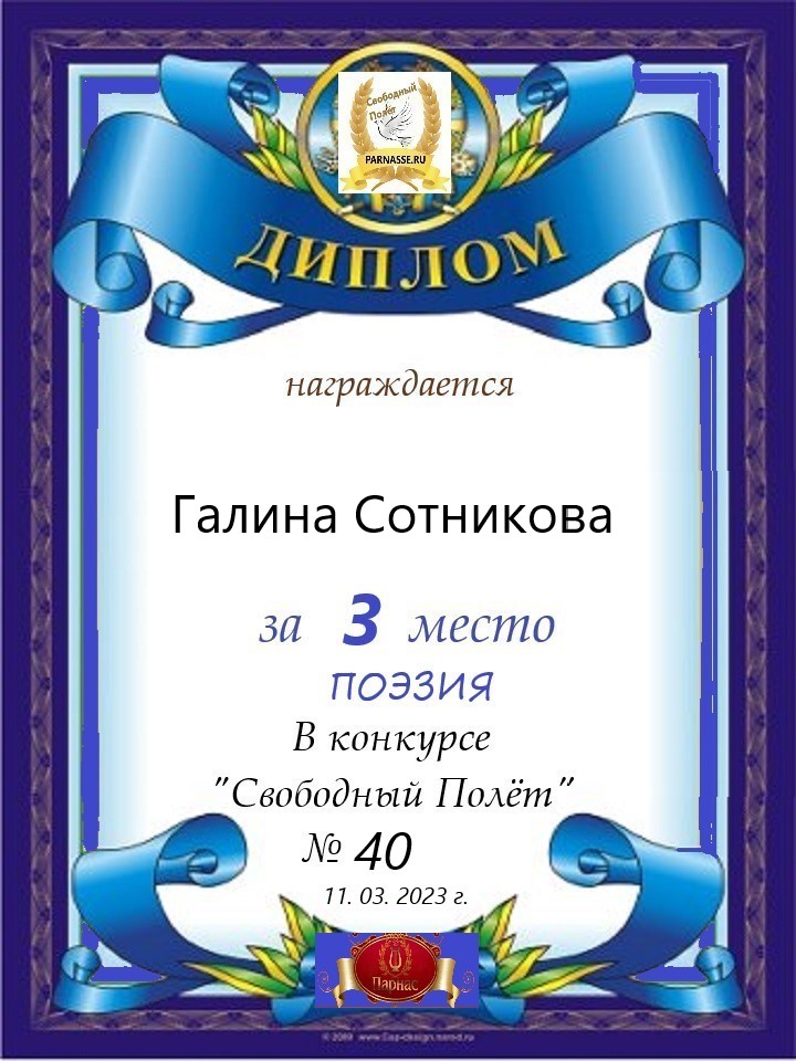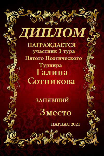 Диплом за 1 место в 117 конкурсе АКРОСТИХА (Альтернатива)! ПОЗДРАВЛЯЮ!