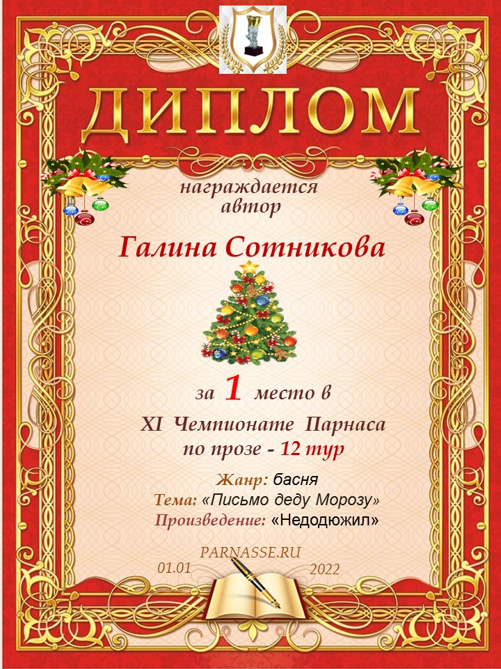 Первое место по решению Администрации и Главного судьи «Декабрь - время чудес, волшебства и новогодних сказок»