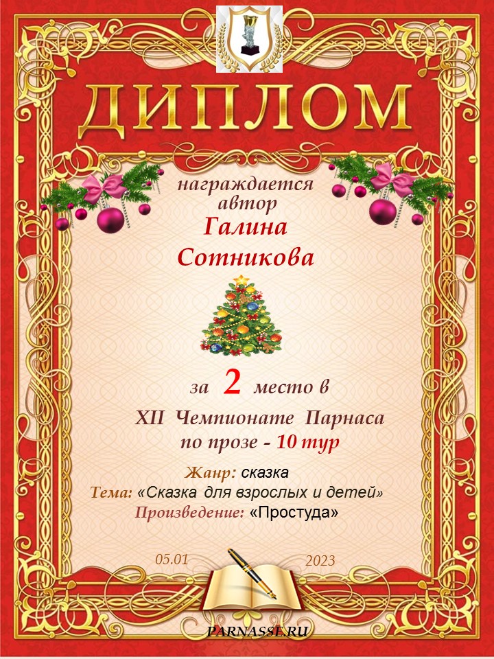 Поздравляю с занятым 2 местом в 10 туре XII Чемпионата Парнаса по прозе!