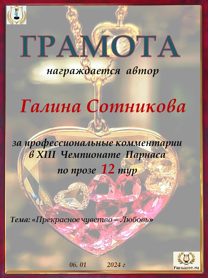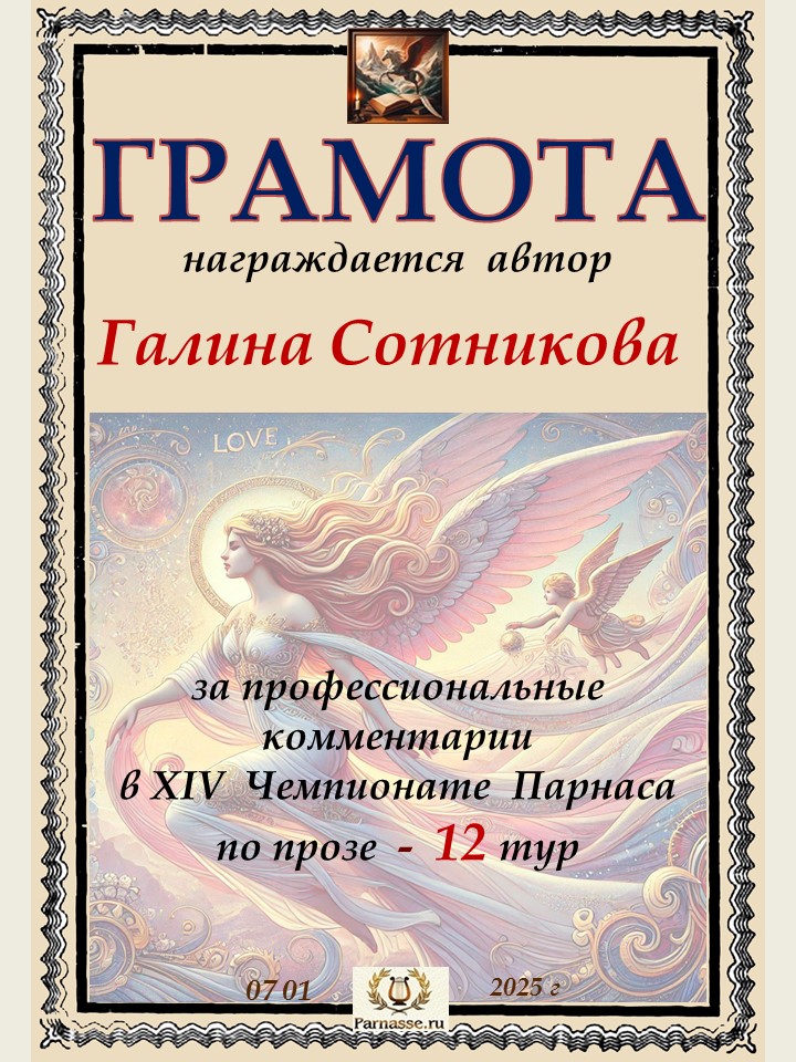 Спасибо за профессиональные комментарии в 12 туре XIII Чемпионата Парнаса по прозе!