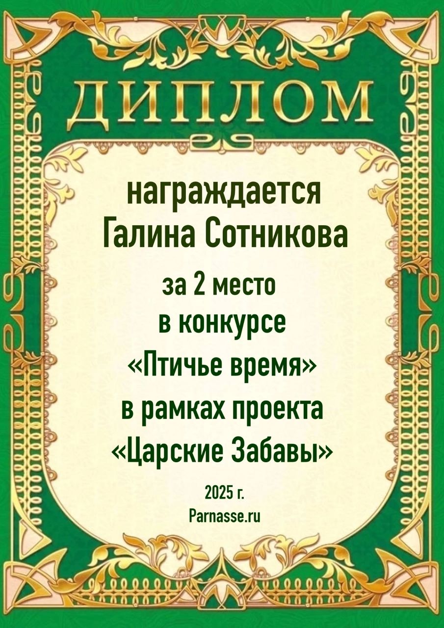 2 место в конкурсе "Птичье время". Поздравляем!