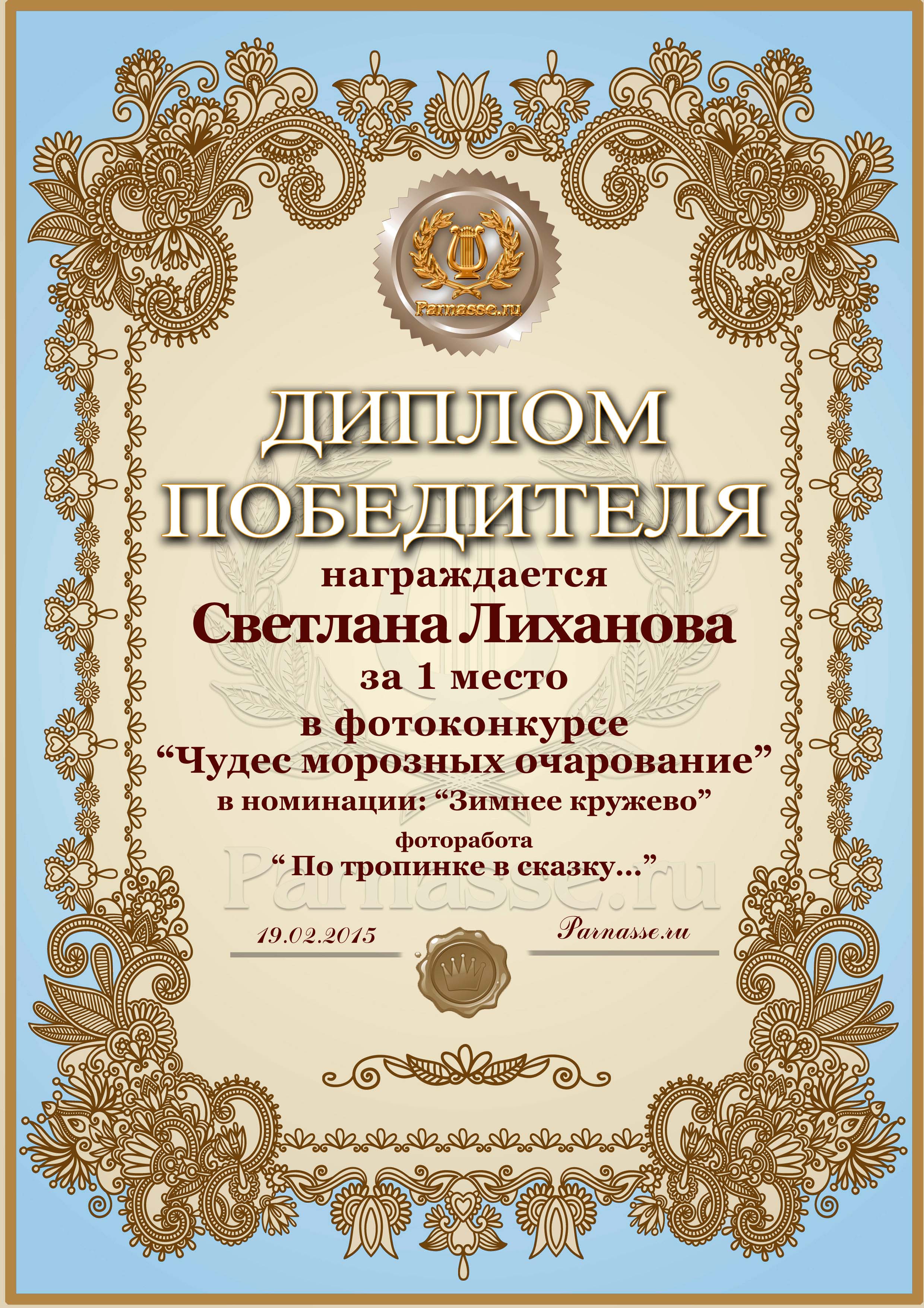 Диплом за 1 место в фотоконкурсе "Чудес морозных очарование"