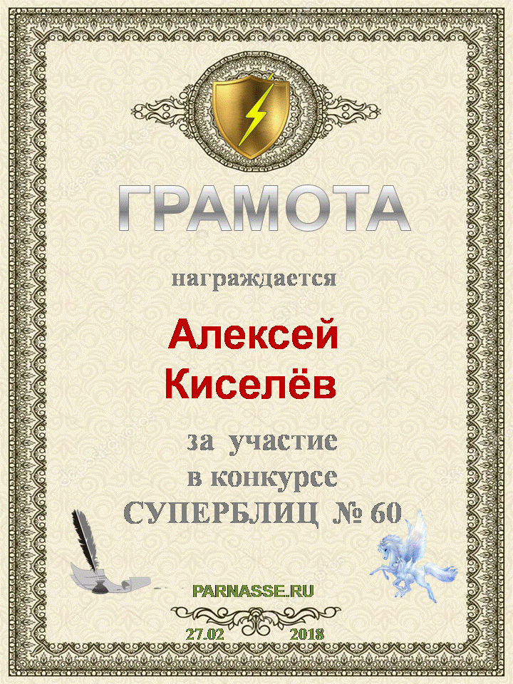 Грамота за участие в конкурсе СУПЕРБЛИЦА № 60!