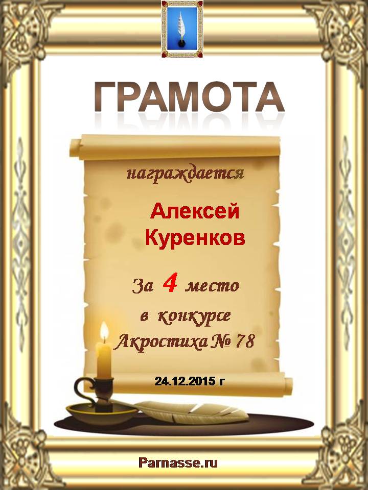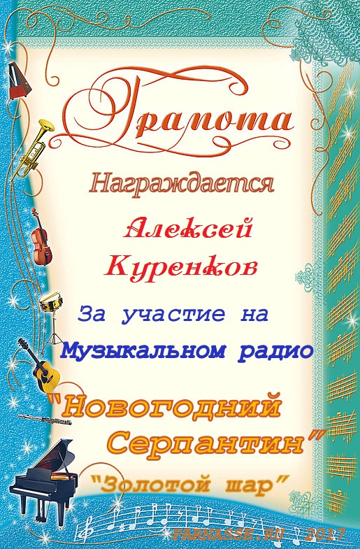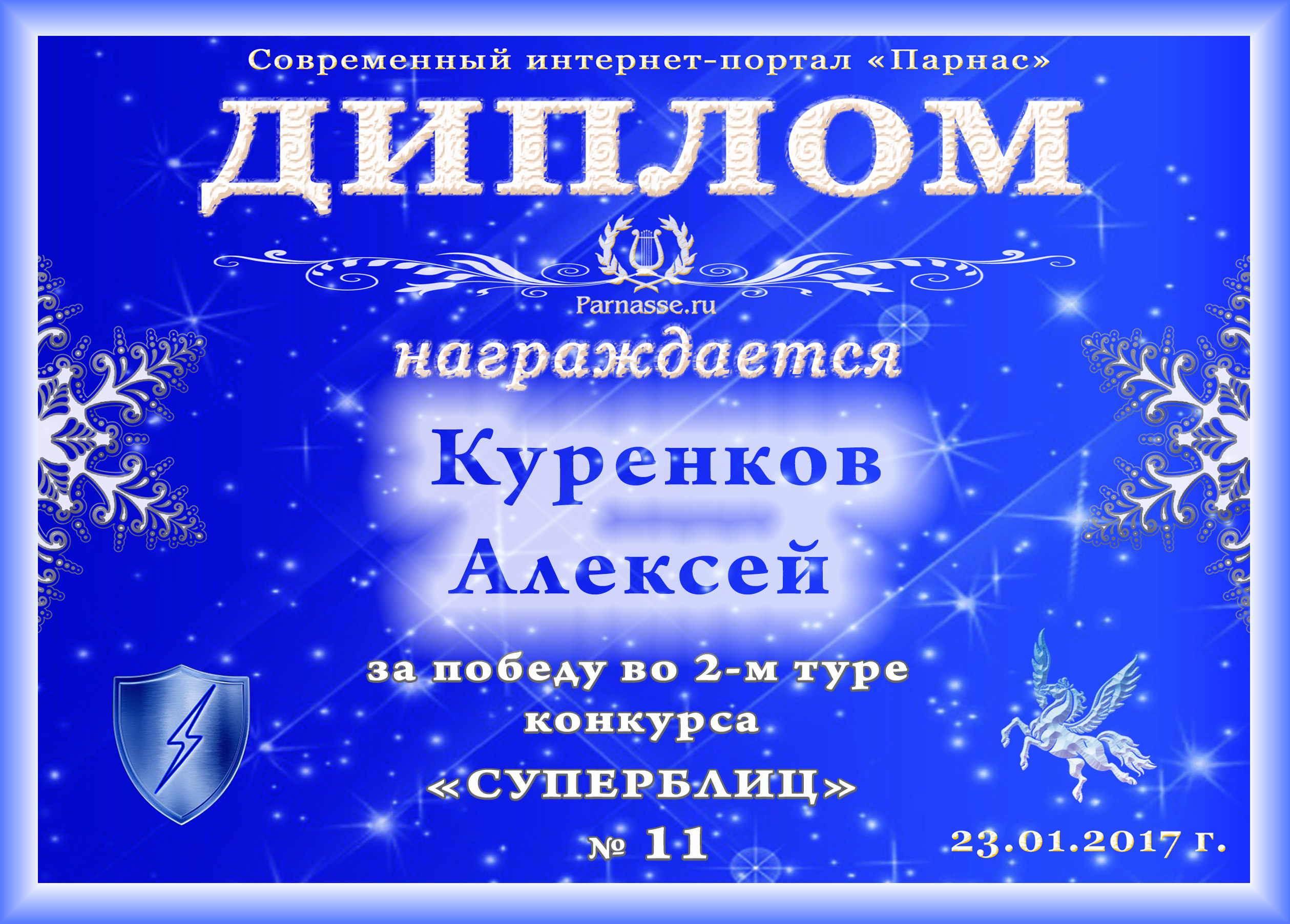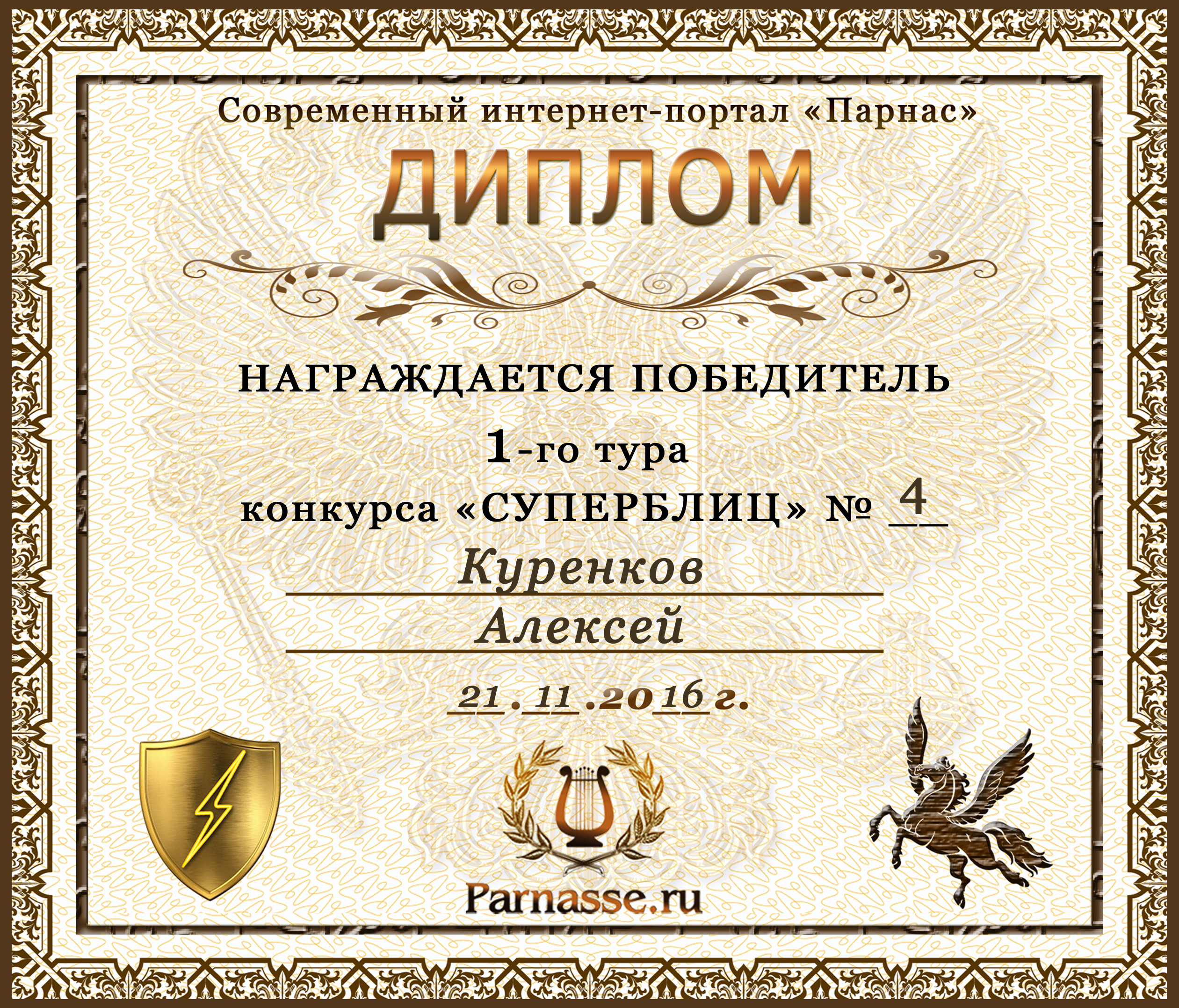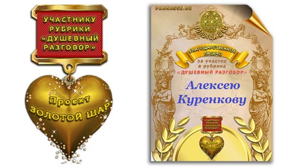 За неугасающую и неисчерпаемую творческую активность, постоянный контакт с Музой и признание сообществом "Парнасцев".От всей души желаем Вам, Алексей, здоровья, любви, успехов, благополучия, удачи и творческого вдохновения!