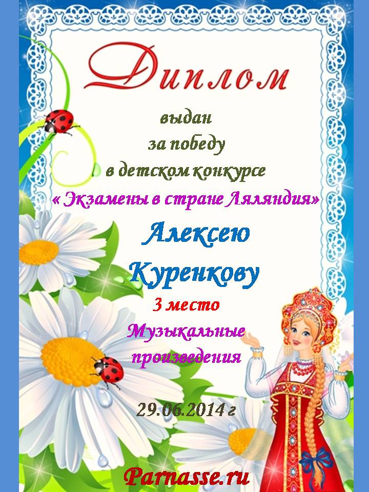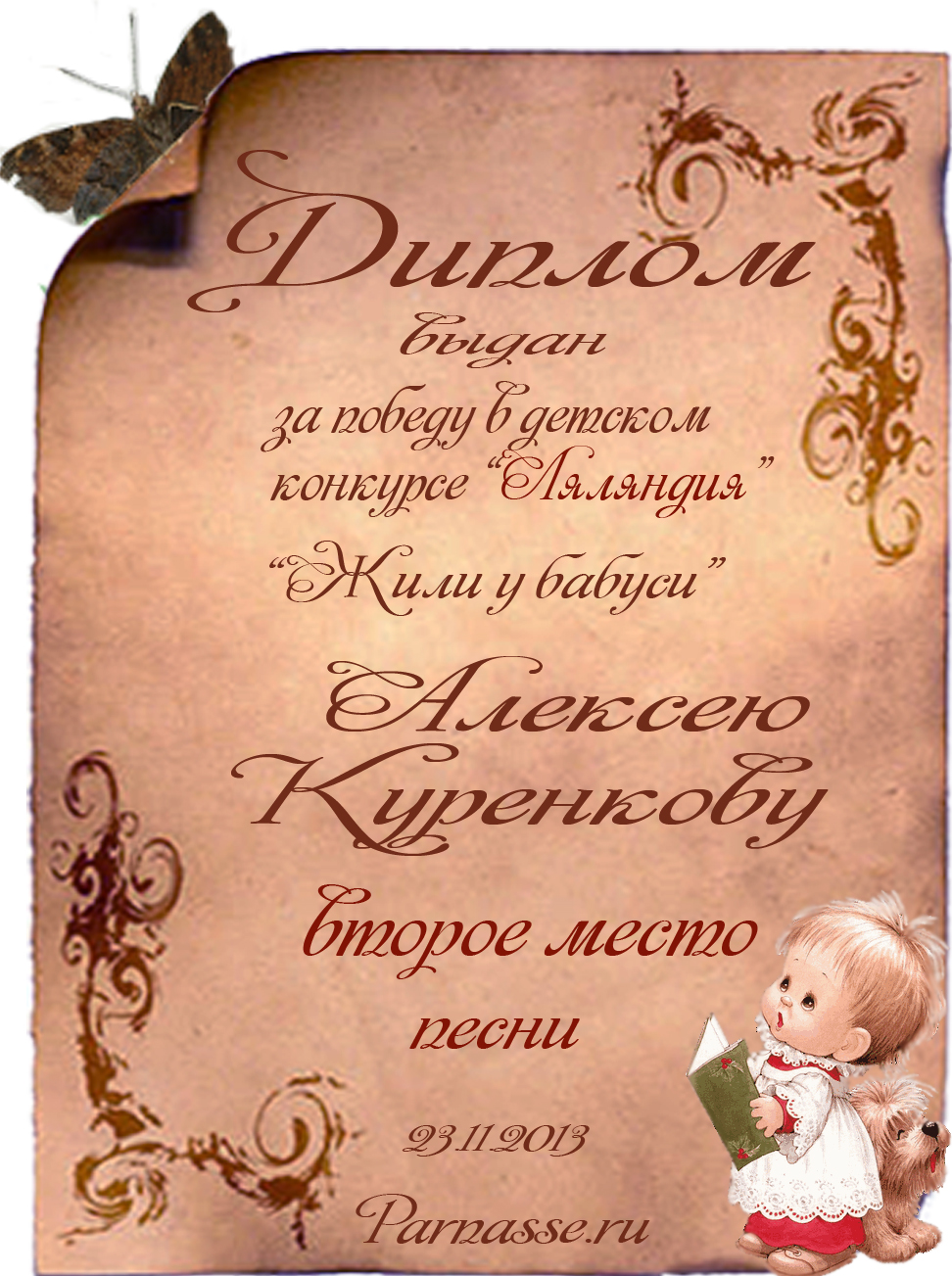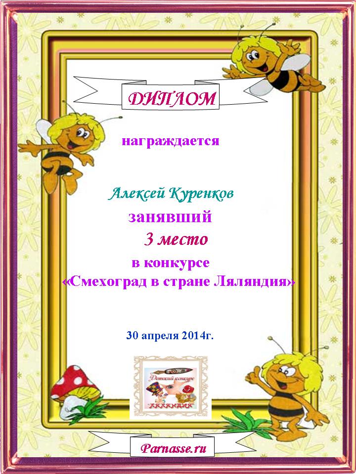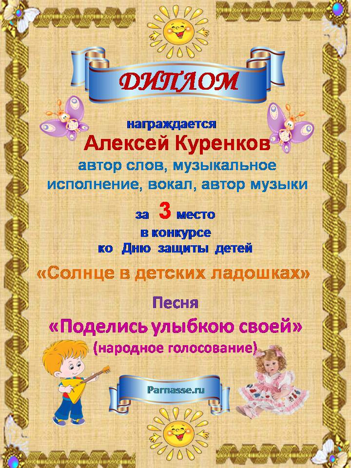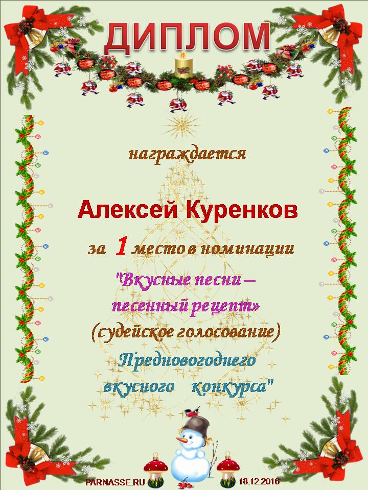 Диплом за 1 место в праздничном конкурсе "Поздравим Парнас с трёхлетием вместе!"