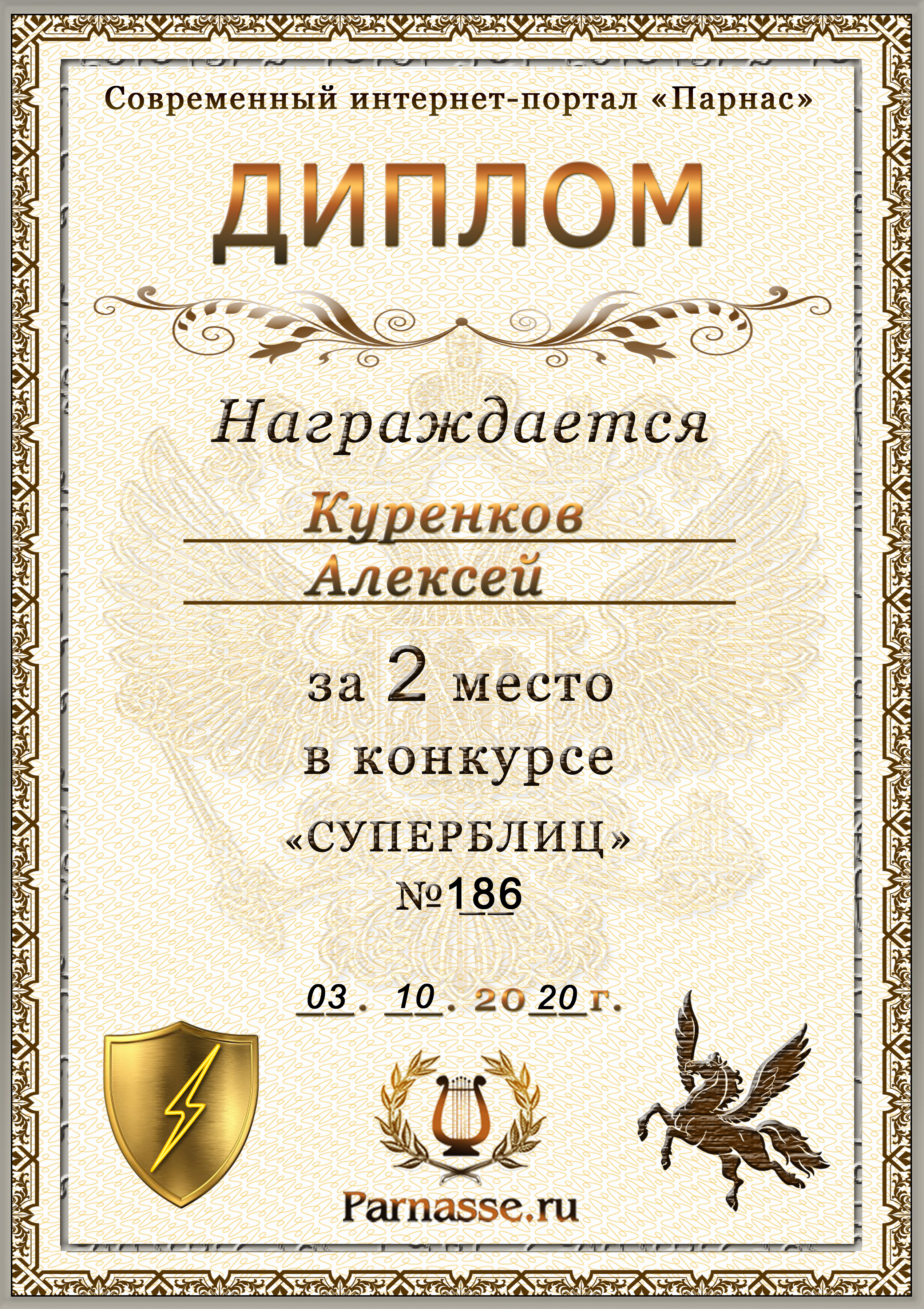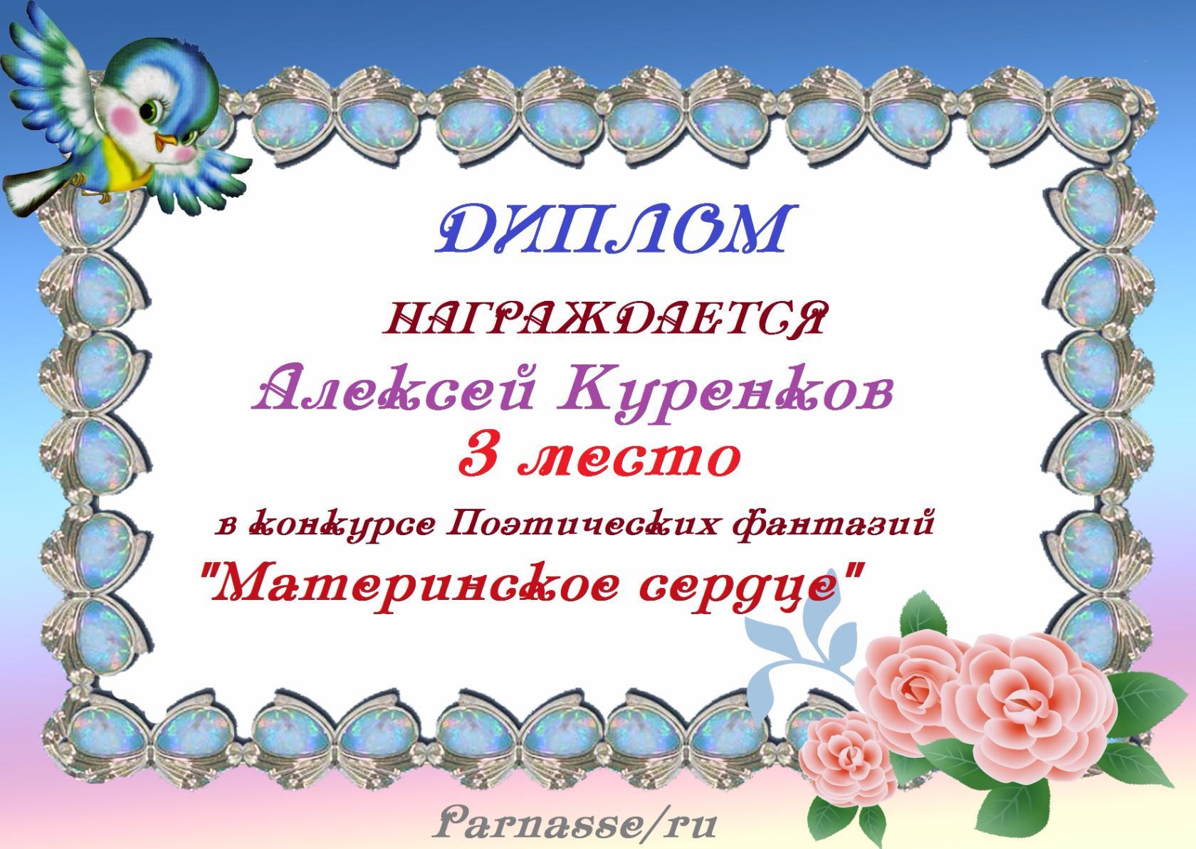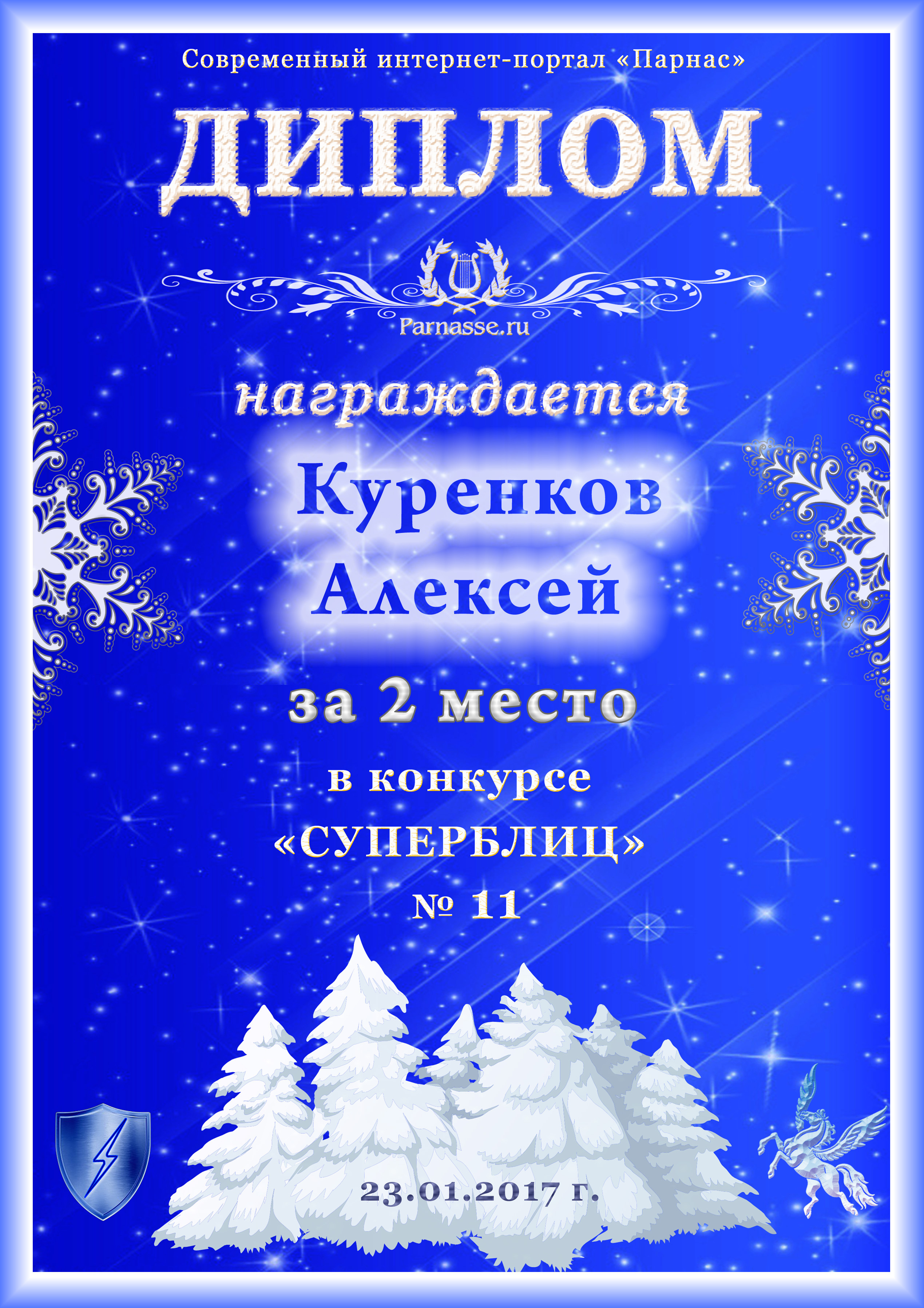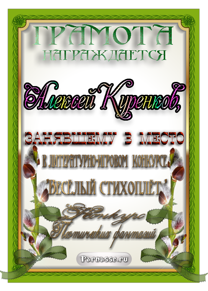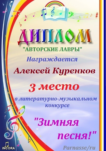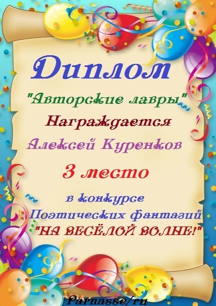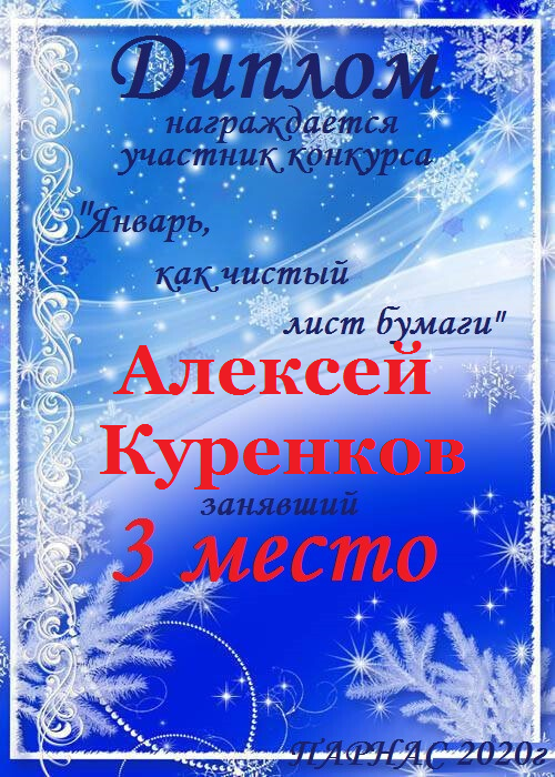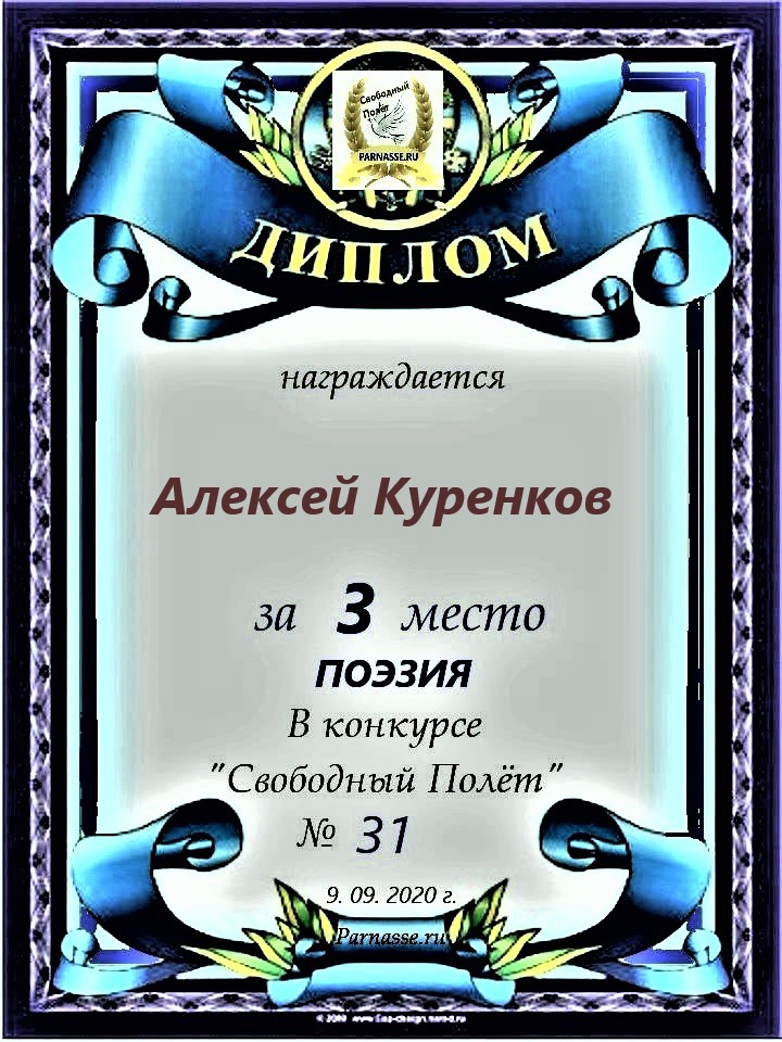 за 3 место в конкурсе"Свободный Полёт" № 31 ПОЭЗИЯ