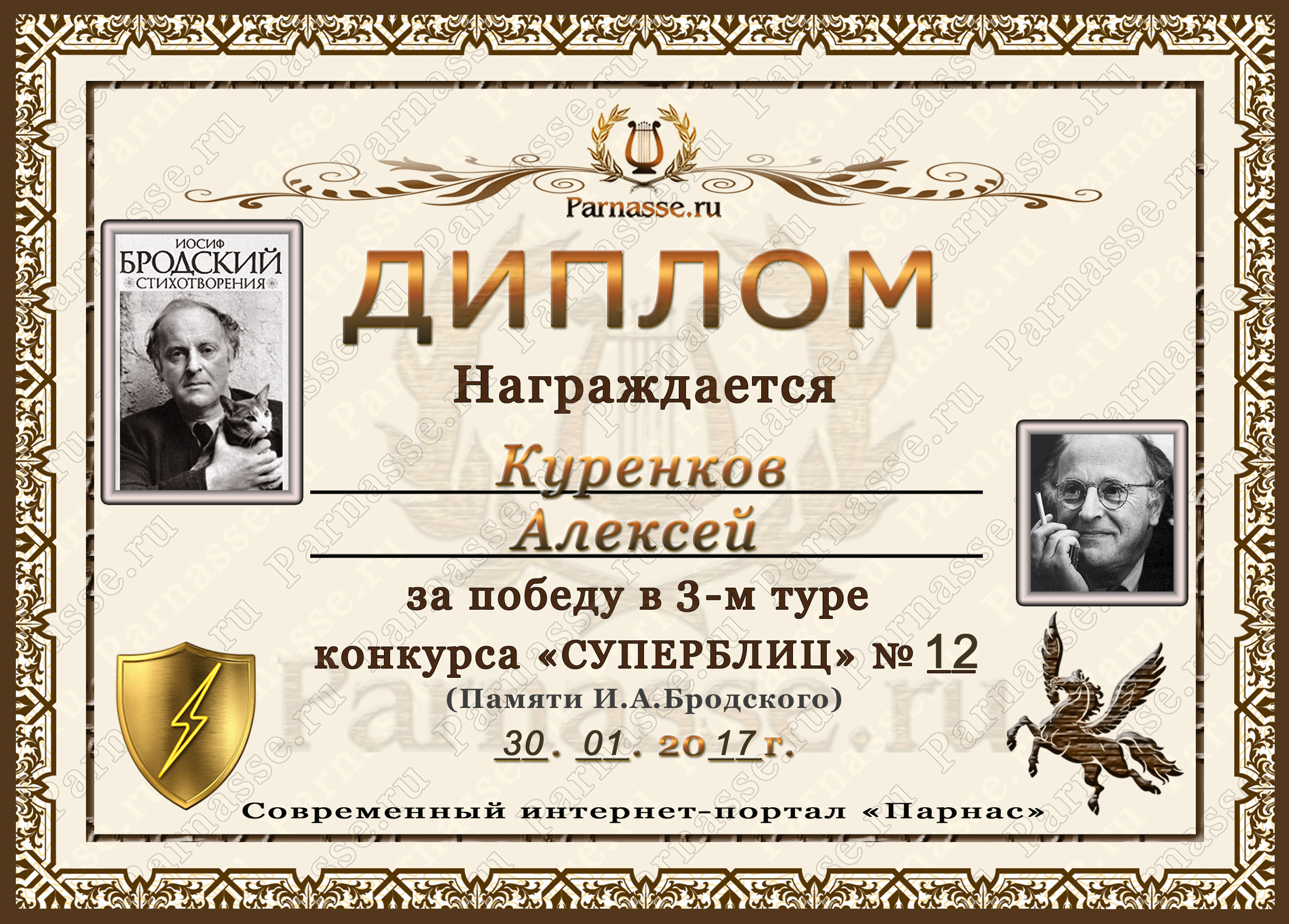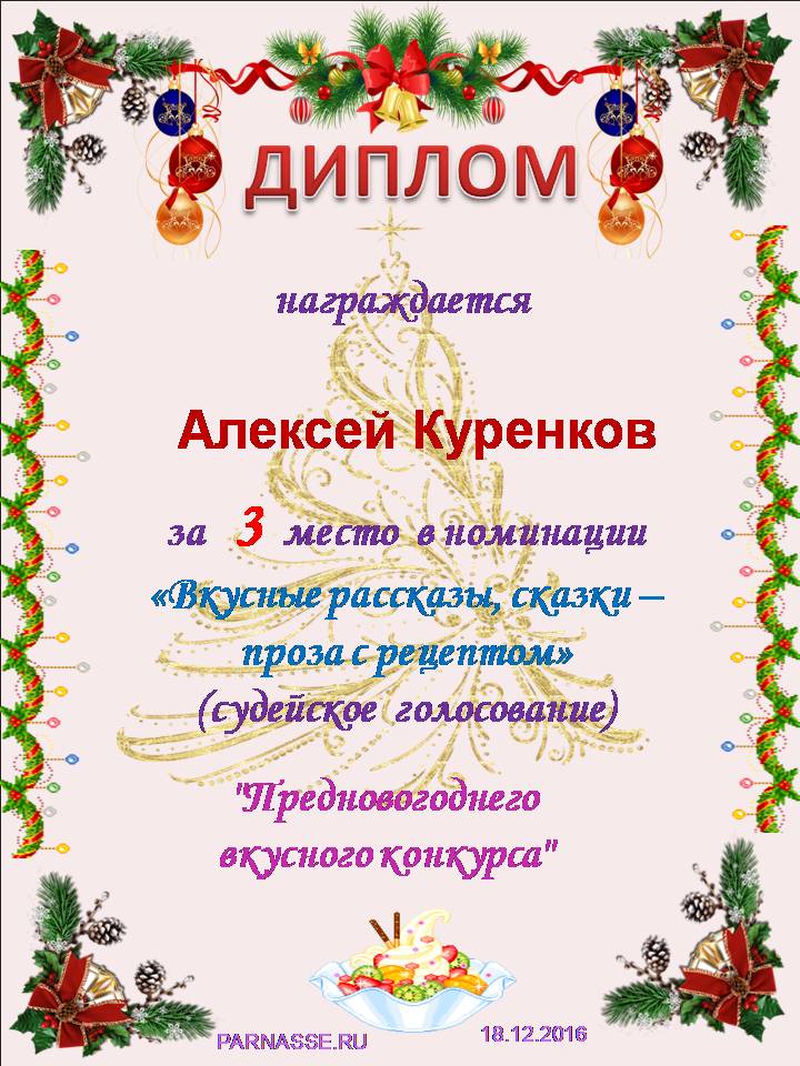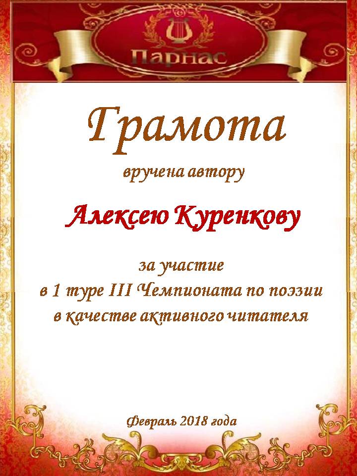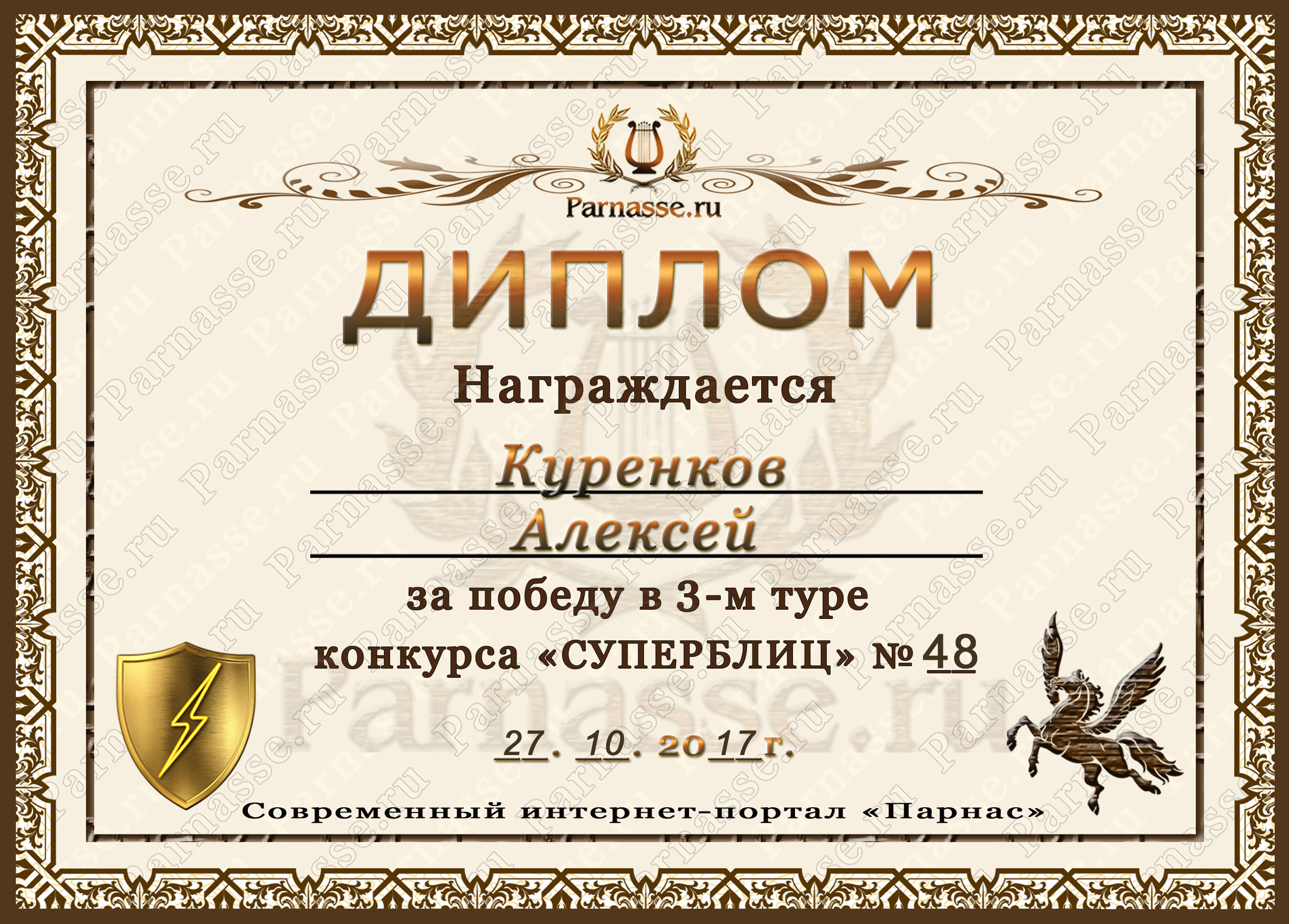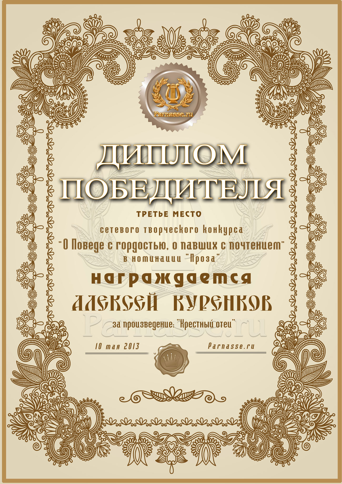 За 3 место в 4 туре IX Чемпионата Парнаса по Прозе (народное голосование)
