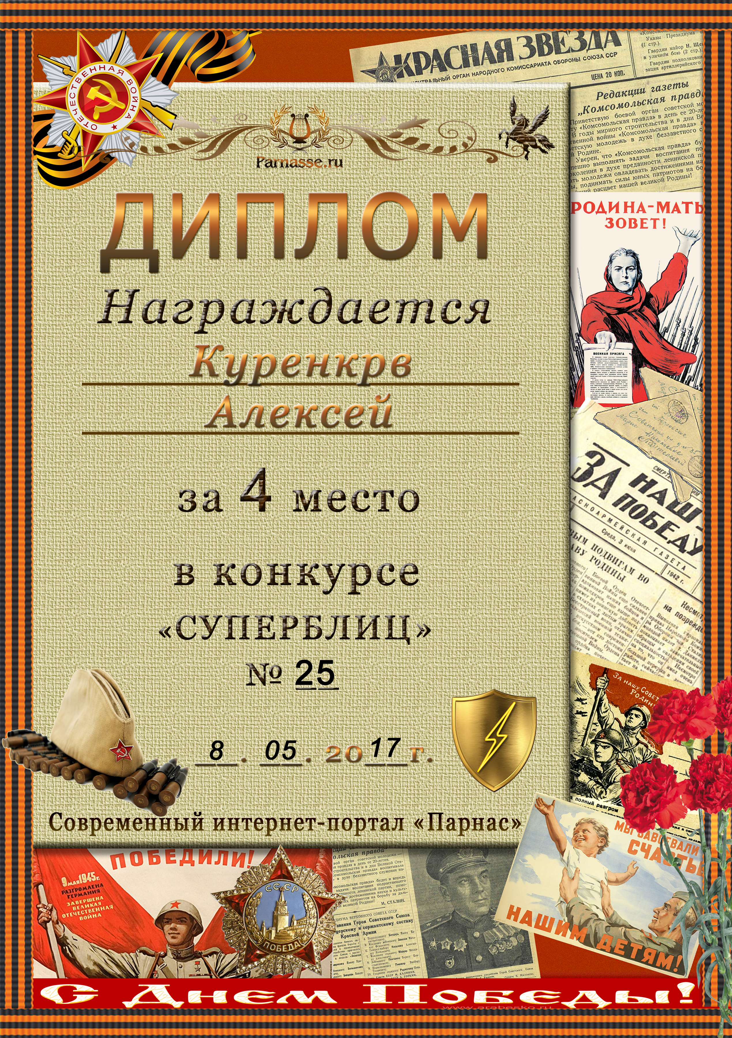 Победителю конкурса,посвящённого71-й годовщине ВЕЛИКОЙ ПОБЕДЫ.