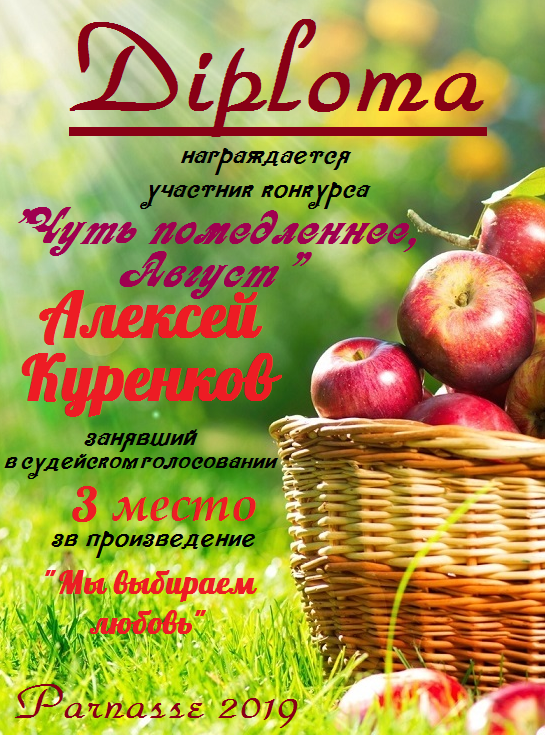 Третье место в конкурсе " Чуть помедленнее, Август", судейское голосование. Поздравляем с прекрасной победой!