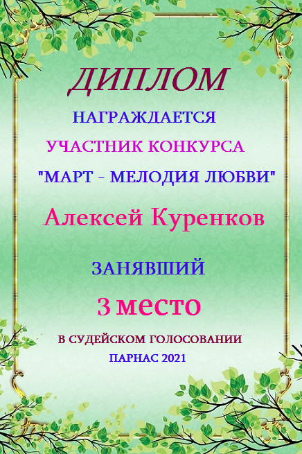 Третье место в судейском голосовании по итогам конкурса "март -мелодия любви"