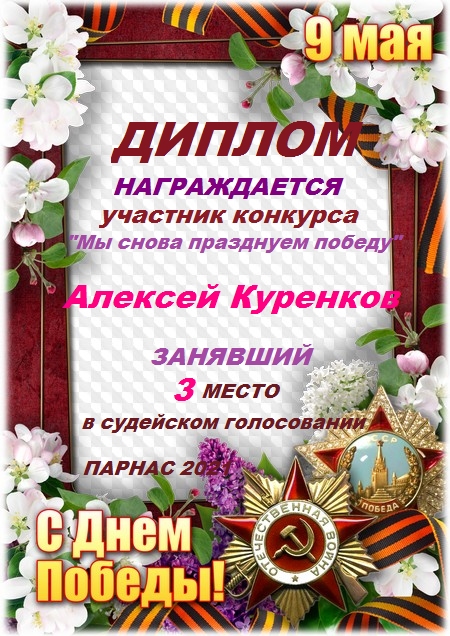 Третье место в судейском голосовании по итогам конкурса "Мы снова празднуем победу"