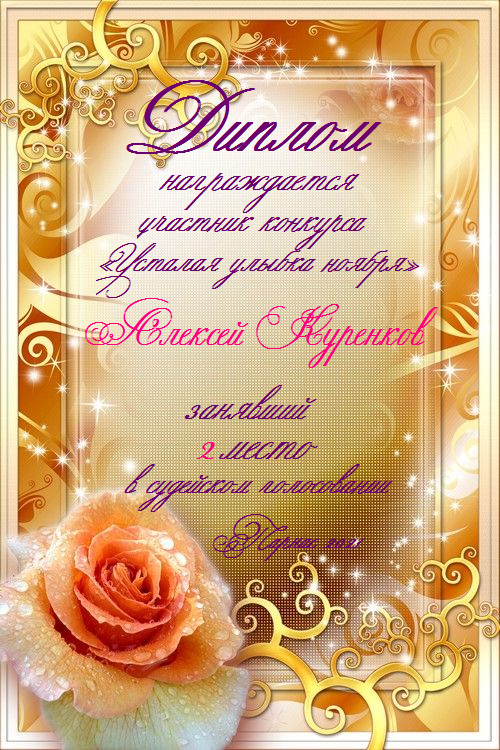 Второе место в судейском голосовании по итогам конкурса «Усталая улыбка ноября»