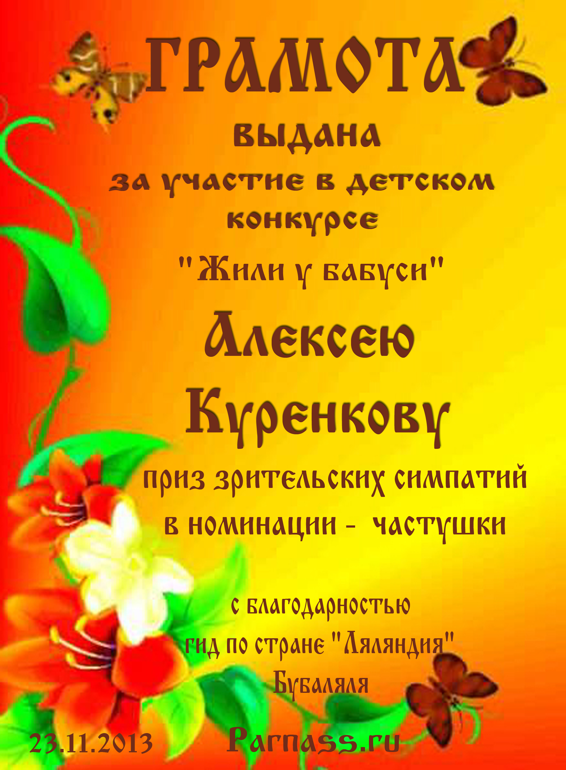 Похвальная грамота за участие в конкурсе лимериков № 20 (17.09.2012 г.)