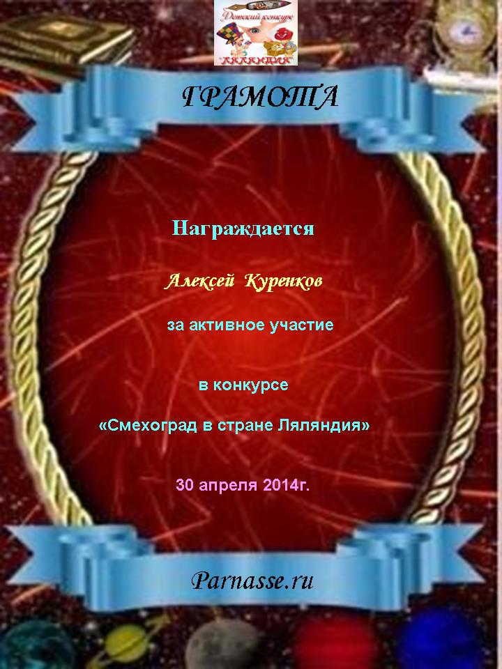 Похвальная грамота за участие в конкурсе лимериков № 22 (15.10.2012 г.)