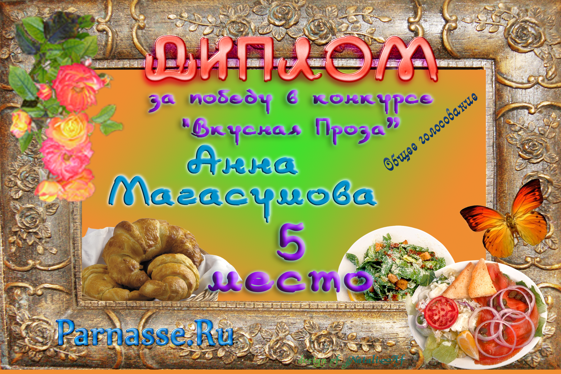 Диплом за победу во "Вкусном конкурсе" ВКУСНАЯ ПРОЗА!